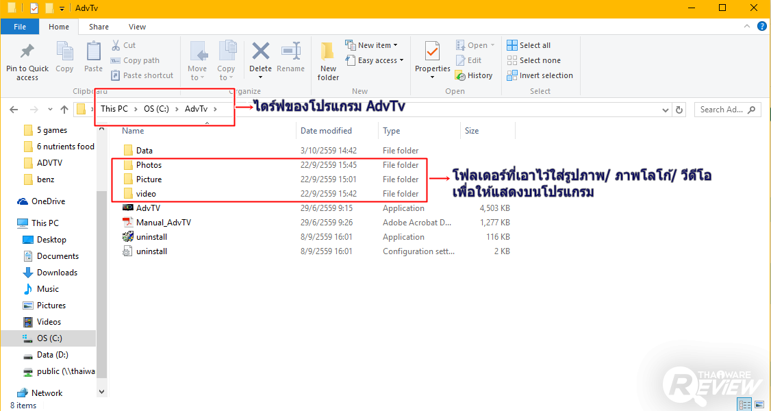 โดยวิธีการที่เราจะตั้งค่ารูปภาพต่างๆ ให้เล่นไปเรื่อยๆ หรือตั้งค่าโลโก้ของเรานั้น เราต้องมีรูปภาพที่เราต้องการ แล้วนำไปใส่ไว้ใน โฟลเดอร์ที่เราติดตั้ง AdvTv (ตามรูปภาพด้านล่างเลย) ถ้าเราติดตั้งแบบ Default โฟลเดอร์ของโปรแกรมจะอยู่ที่ C:\AdvTv\