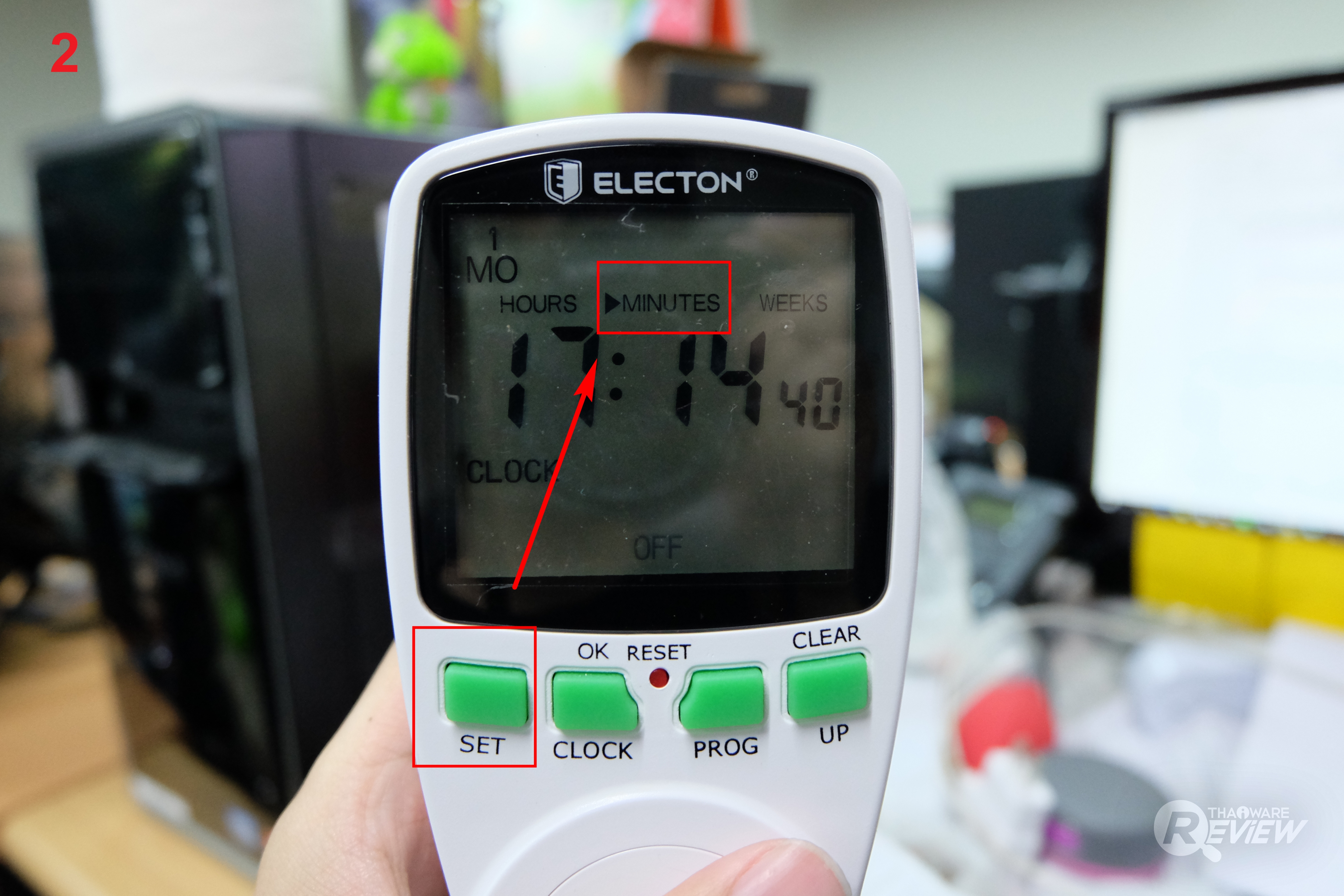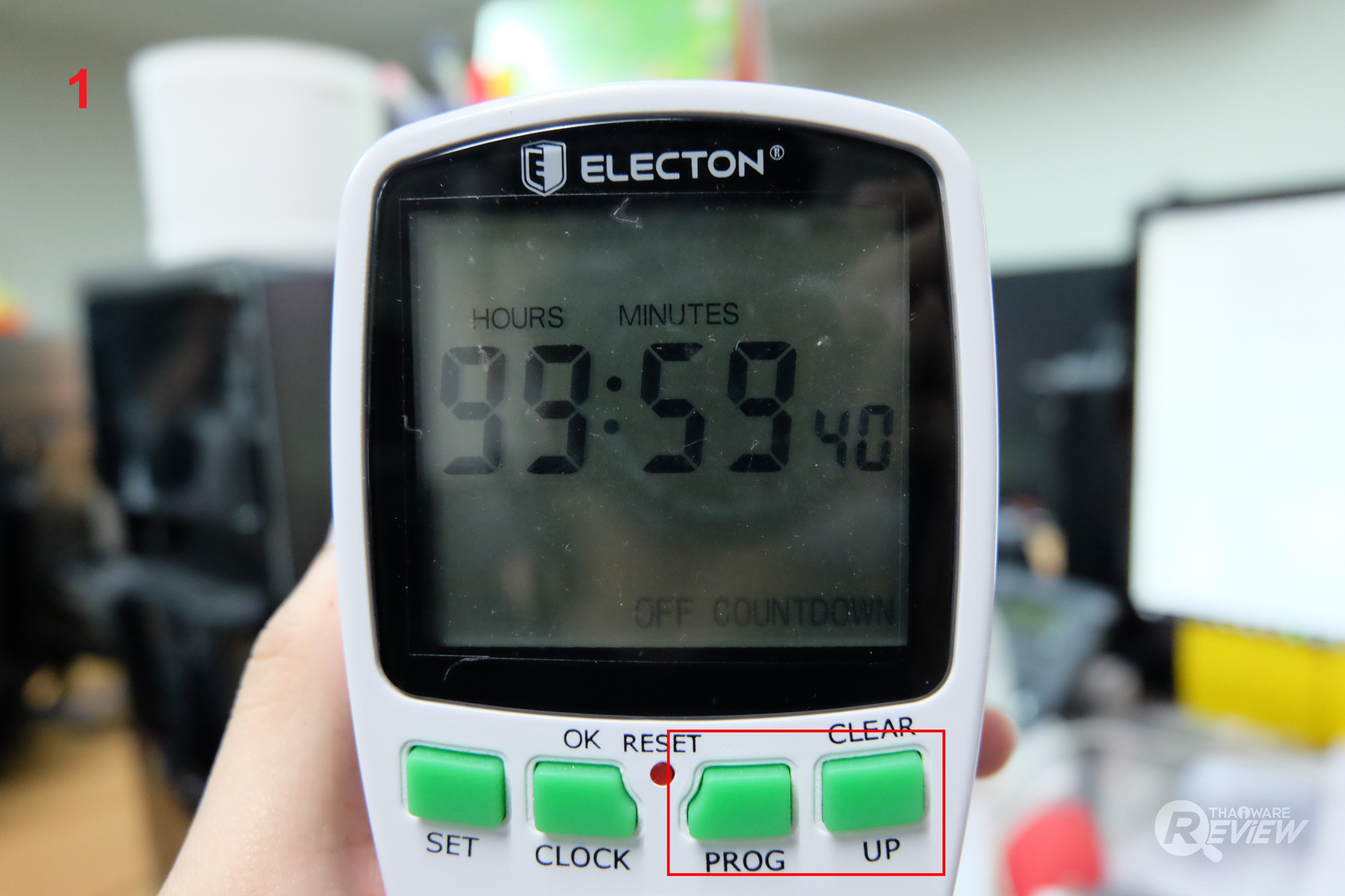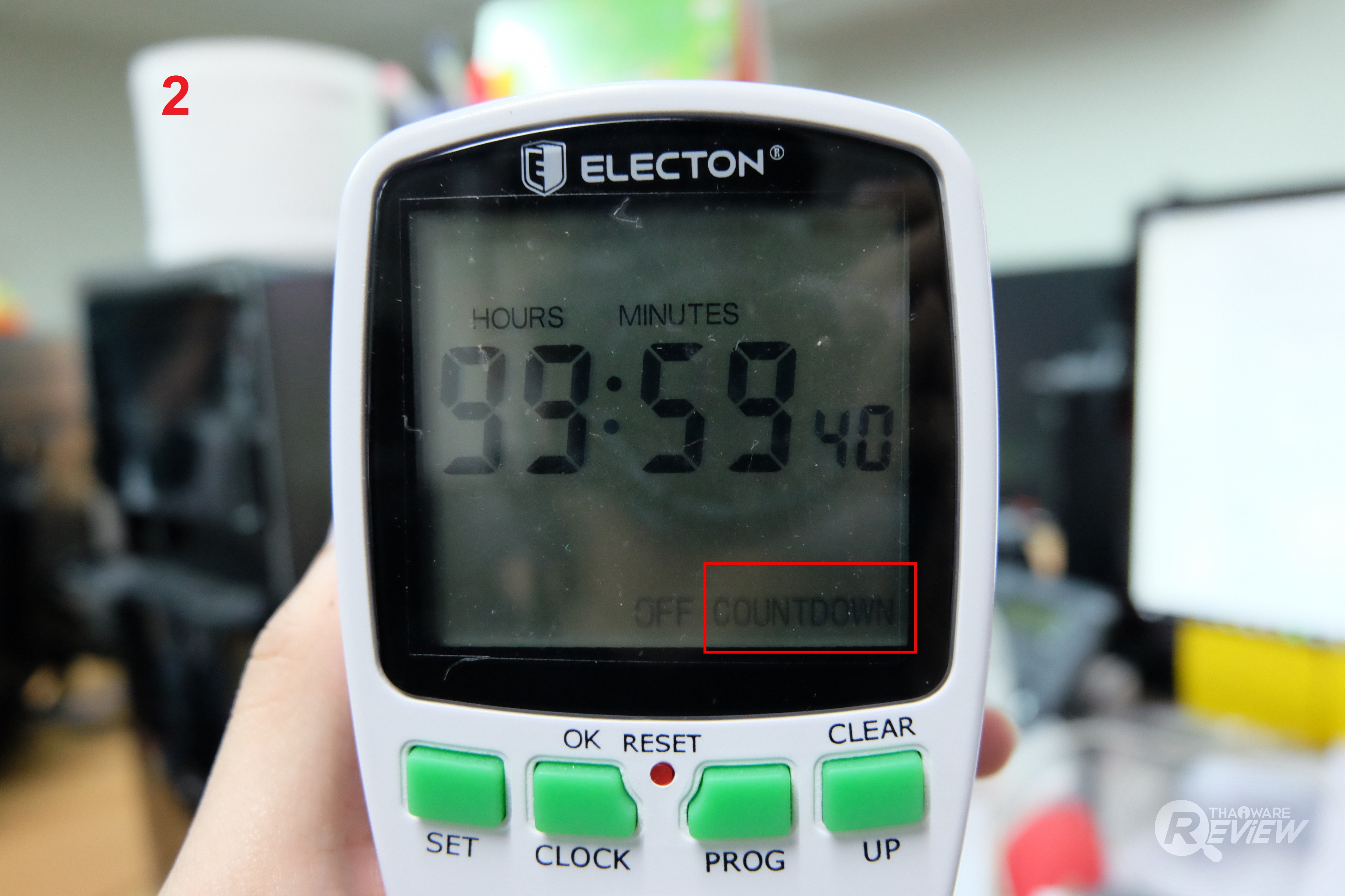หมายเหตุ : การตั้งเวลาถอยหลังเพื่อเปิดให้กดปุ่ม SET เพื่อเปลี่ยนให้เป็นการใช้งาน ON ที่หน้าจอปกติก่อนเข้าไปตั้งค่า และ การตั้งเวลาถอยหลังเพื่อปิดให้กดปุ่ม SET เพื่อเปลี่ยนให้เป็นการใช้งาน OFF ที่หน้าจอปกติก่อนเข้าไปตั้งค่า