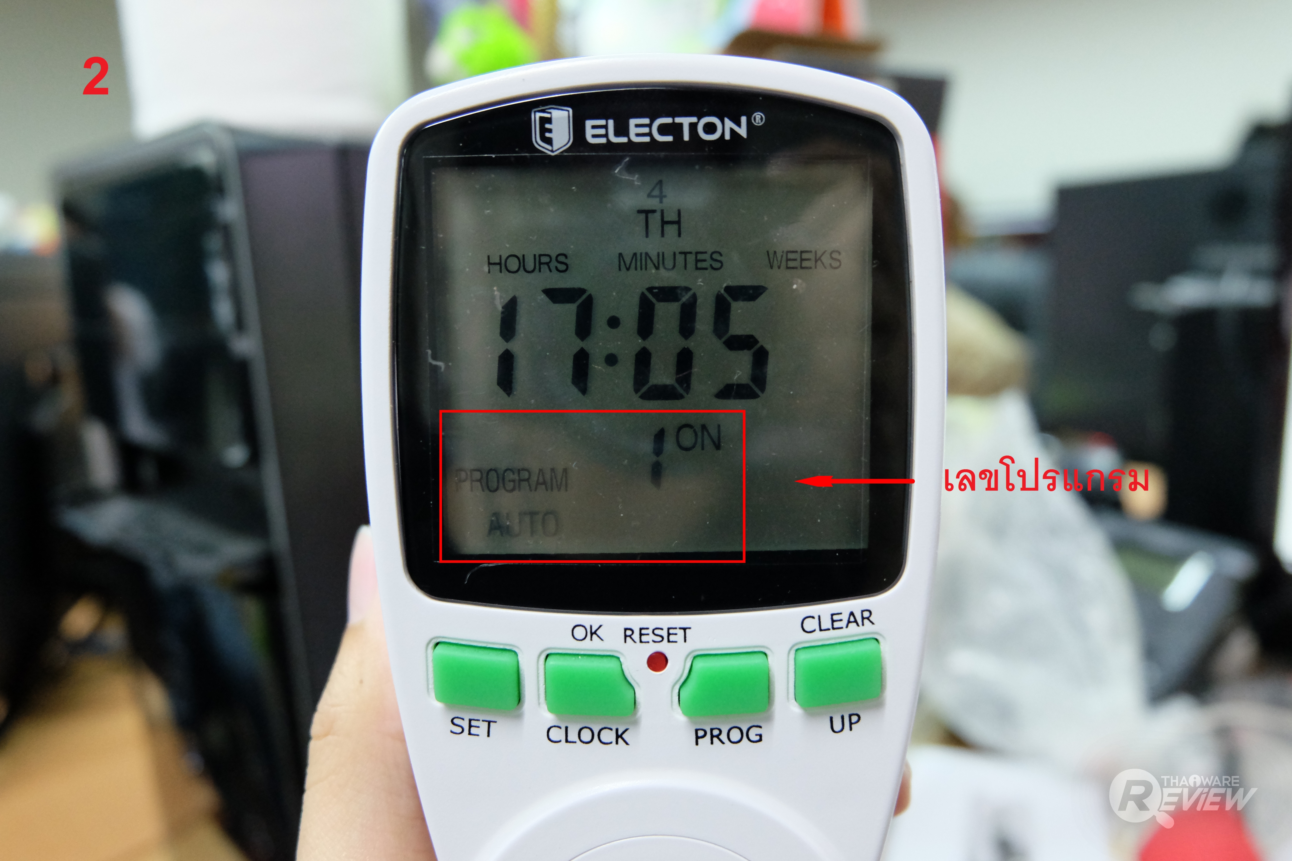 หมายเหตุ : การตั้งค่าโปรแกรม 1-16 หากต้องการให้โปรแกรมไหนทำงาน ให้เลือก ON หากต้องการยกเลิกให้ปรับเป็น OFF (กดปุ่ม PROG เพื่อปรับ ON - OFF โปรแกรมที่ใช้งานอยู่ หรือ ตั้งโปรแกรมใหม่ที่มีตั้งแต่ 2 - 16 นั่นเอง)