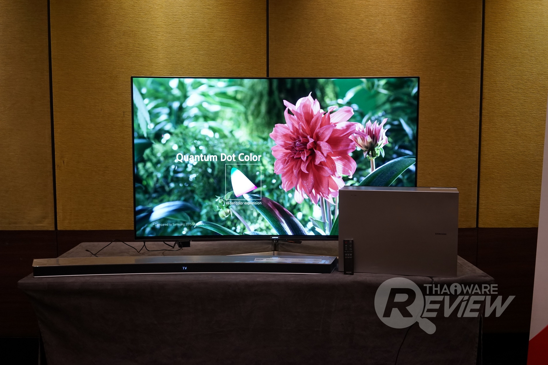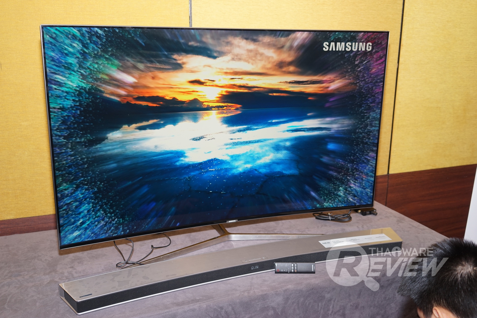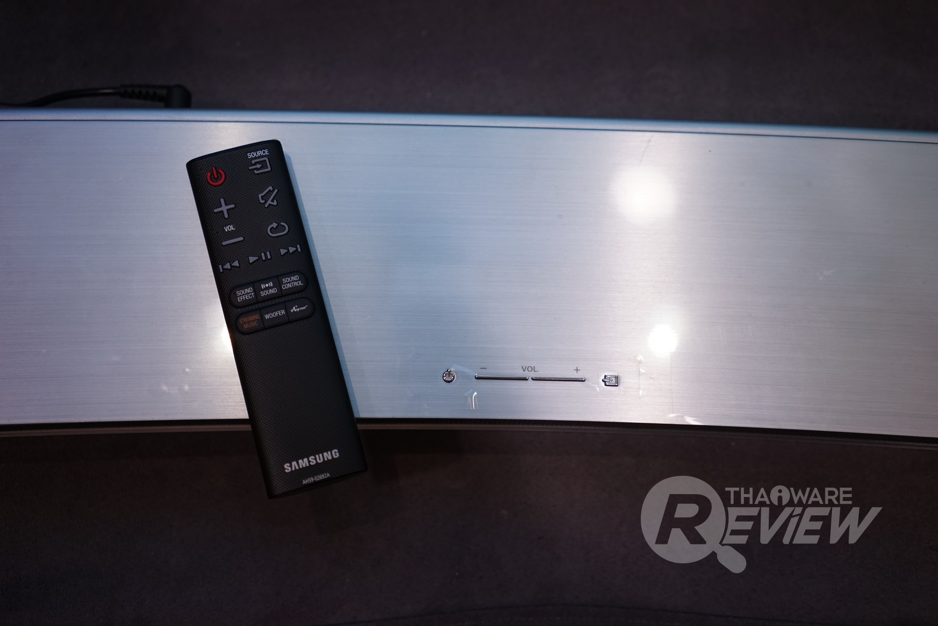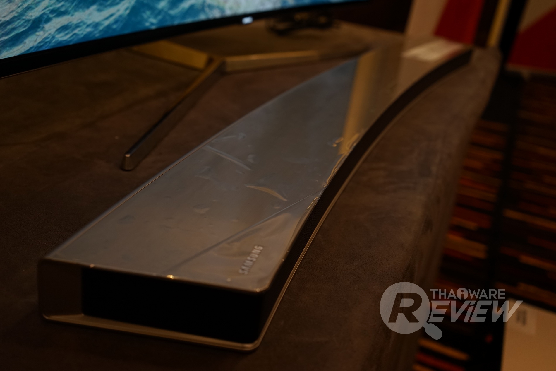 mØuanในบทความรีวิวนี้ ทางไทยแวร์ขอเชิญทุกท่าน มาสัมผัสกับ Curved Soundbar ลำโพงดีไซน์โค้งสวยงามและทรงพลังจากทาง Samsung สำหรับทีวีจอยักษ์ในยุคนี้ และซาวด์บาร์รุ่นที่เราได้สัมผัสมา ก็คือ Samsung Curved Soundbar HW-J7501R ที่เหมาะสำหรับทีวีจอยักษ์ขนาด 55 - 65 นิ้วนั่นเอง ลองไปชมคุณสมบัติคร่าวๆ ของซาวด์บาร์ตัวนี้กันก่อนเลย