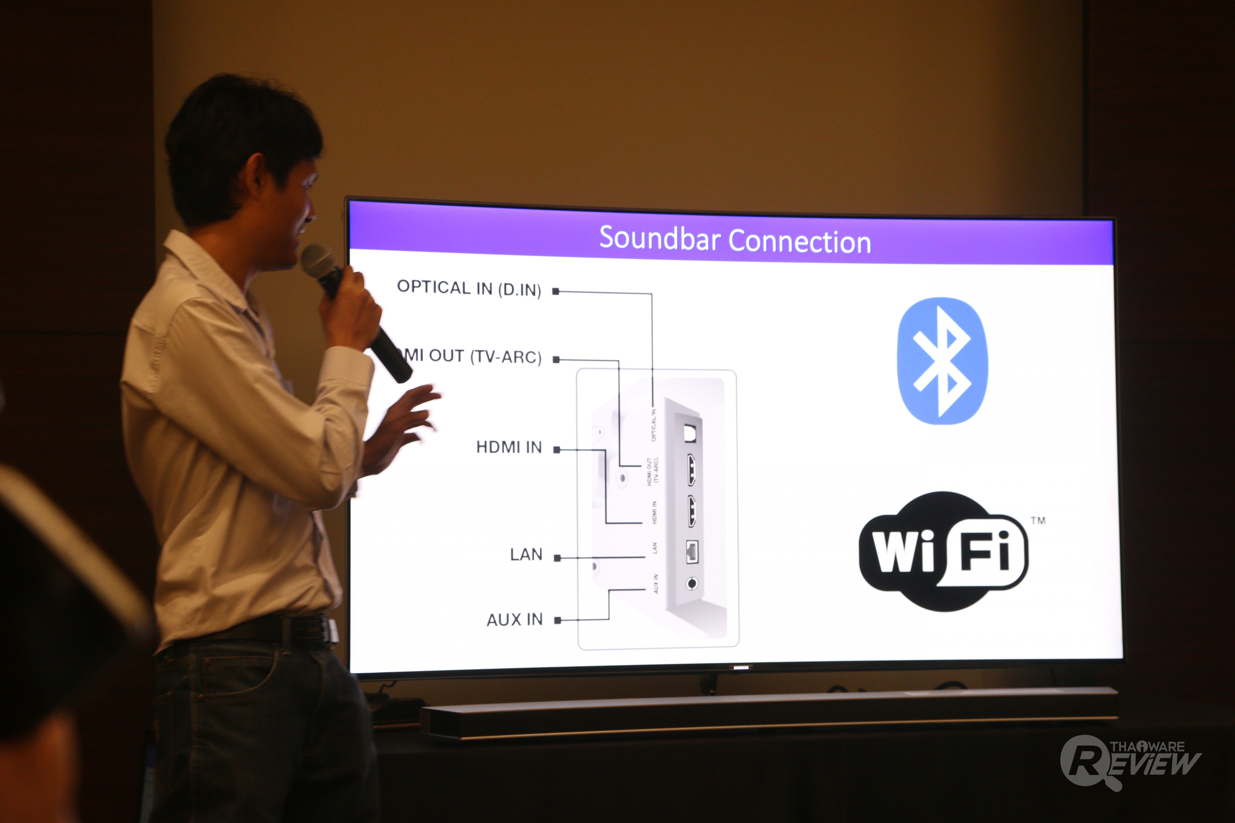 สิ่งที่น่าสนใจอีกอย่างหนึ่งนอกจากการเชื่อมต่อแบบไร้สายและเสียงแบบรอบทิศทางแล้ว ก็คือซาวด์บาร์ตัวนี้ มาพร้อมกับการรองรับคุณภาพเสียงในแบบ HD Audio ด้วยนั่นเอง ซึ่งเสียงจะเป็นยังไง คงต้องลงไปชมในคลิปตัวอย่างกันดู