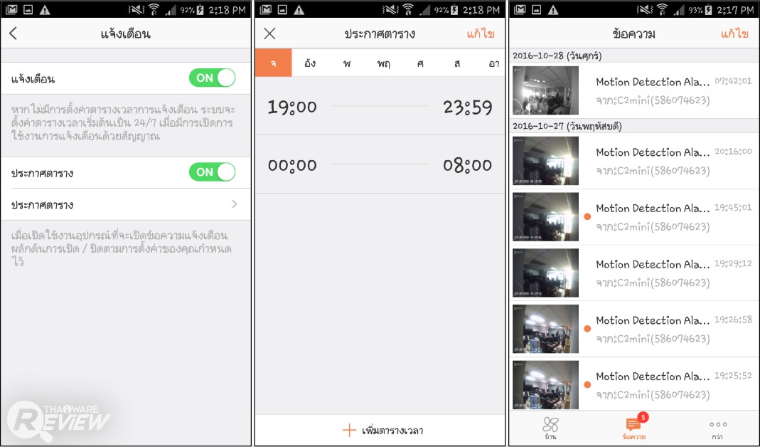 ทีนี้พอกล้องตรวจพบความเคลื่อนไหวในช่วงเวลาที่ตั้งไว้ มันก็จะส่งการแจ้งเตือนมายังสมาร์ทโฟนแบบ Real time กันเลย ซึ่งเราสามารถเรียกดูวิดีโอย้อนหลังของเหตุการณ์แจ้งเตือนต่างๆ ได้โดยการแตะที่ปุ่ม ข้อความ ในแอปฯ ก็จะมีการแสดงหน้าจอตามภาพซ้ายให้ไล่แตะดูวิดีโอย้อนหลังกันได้ง่ายๆ ครับ
