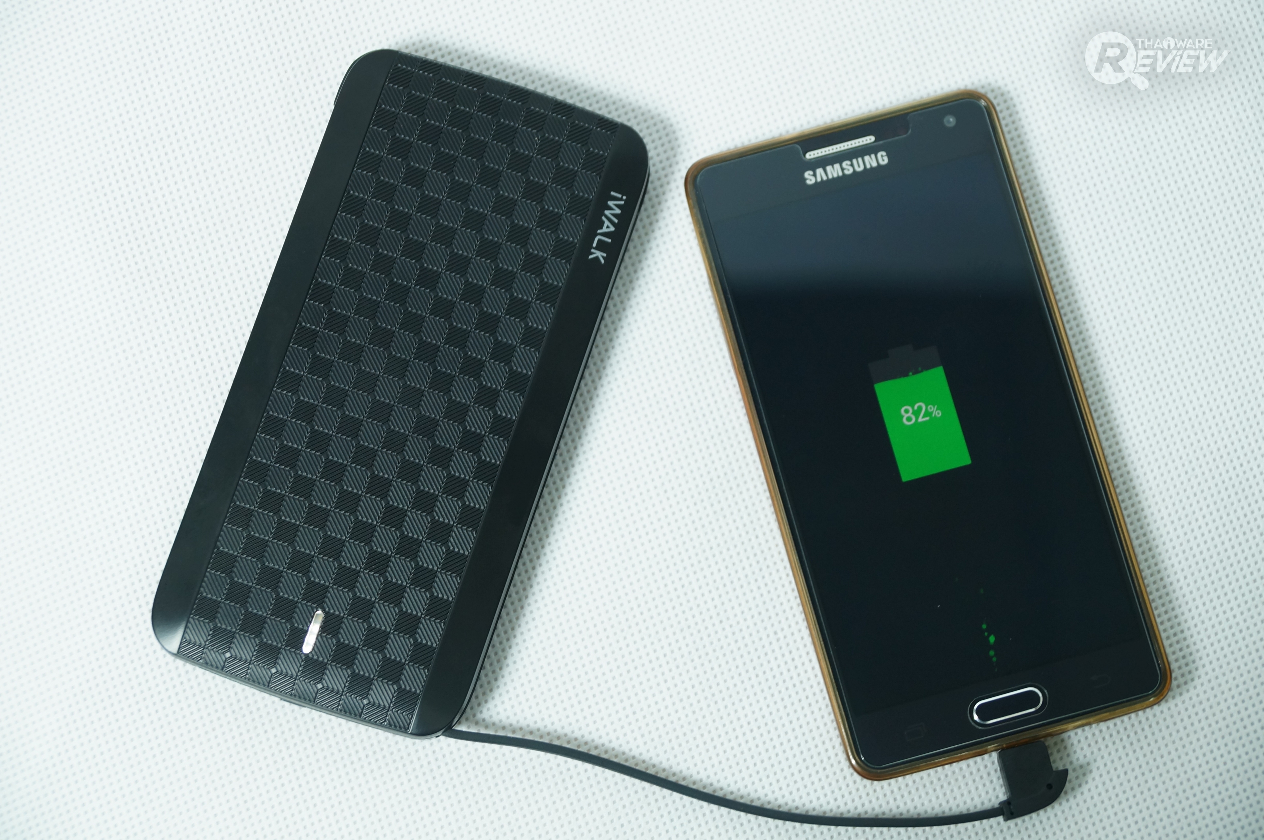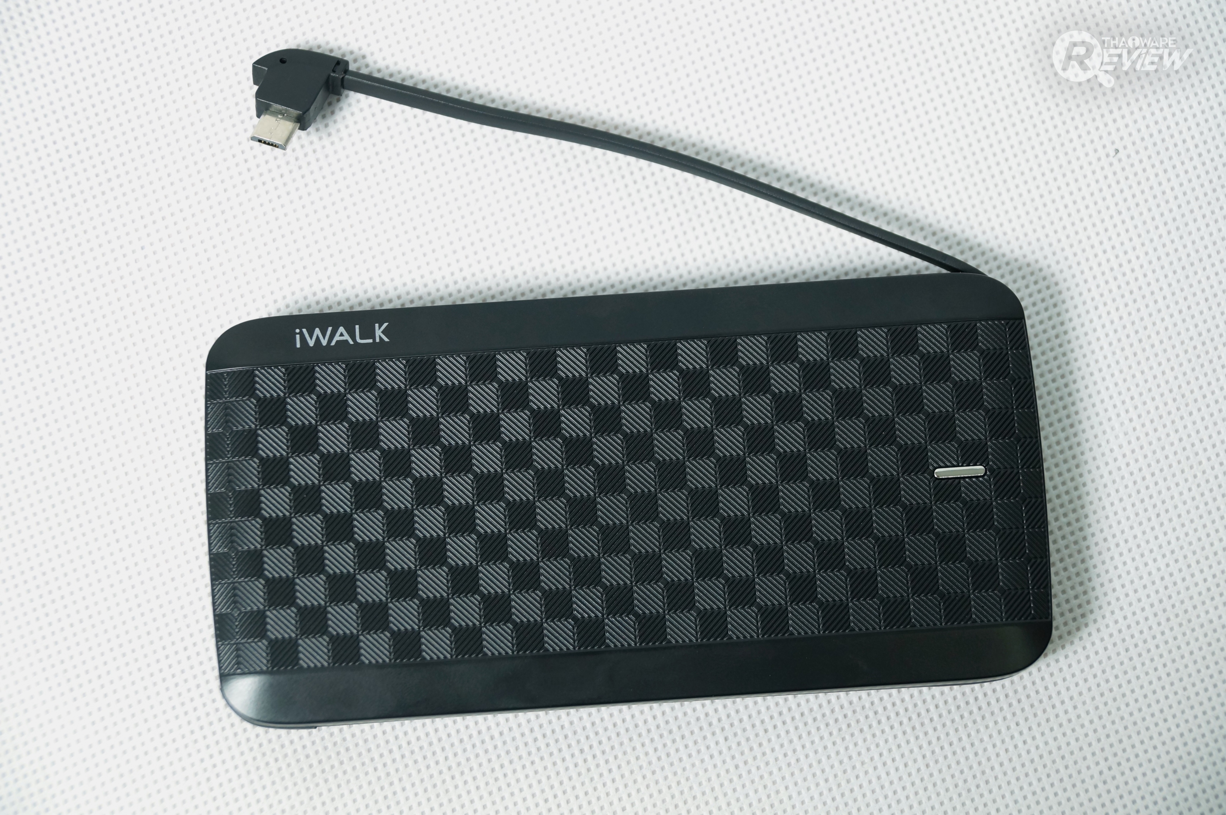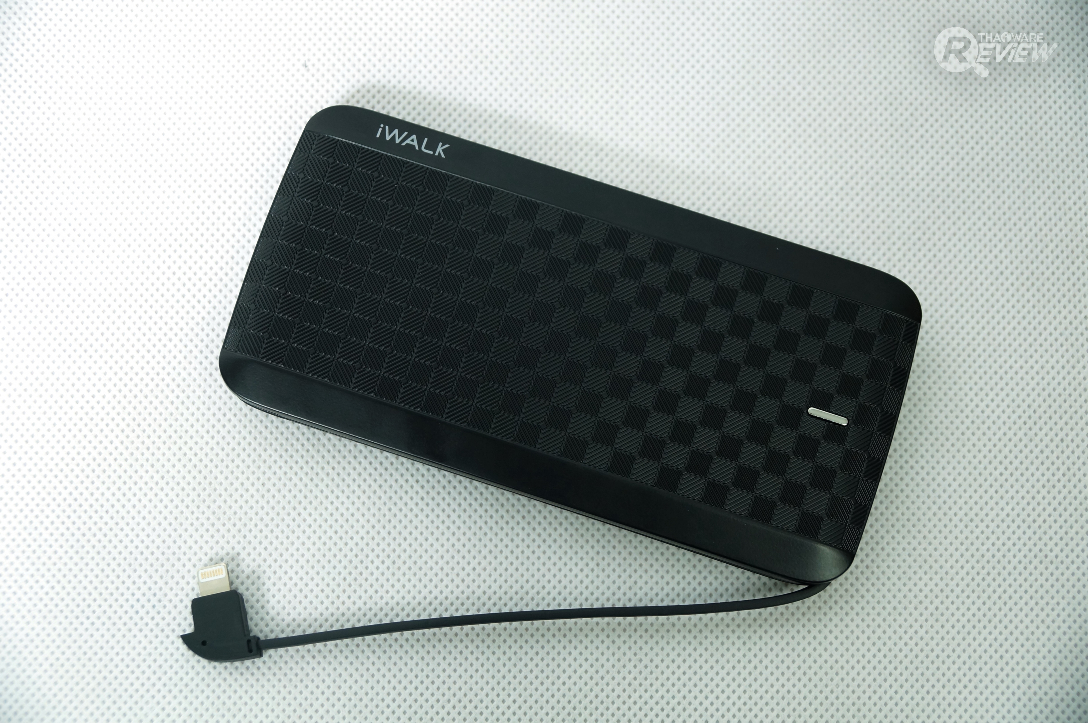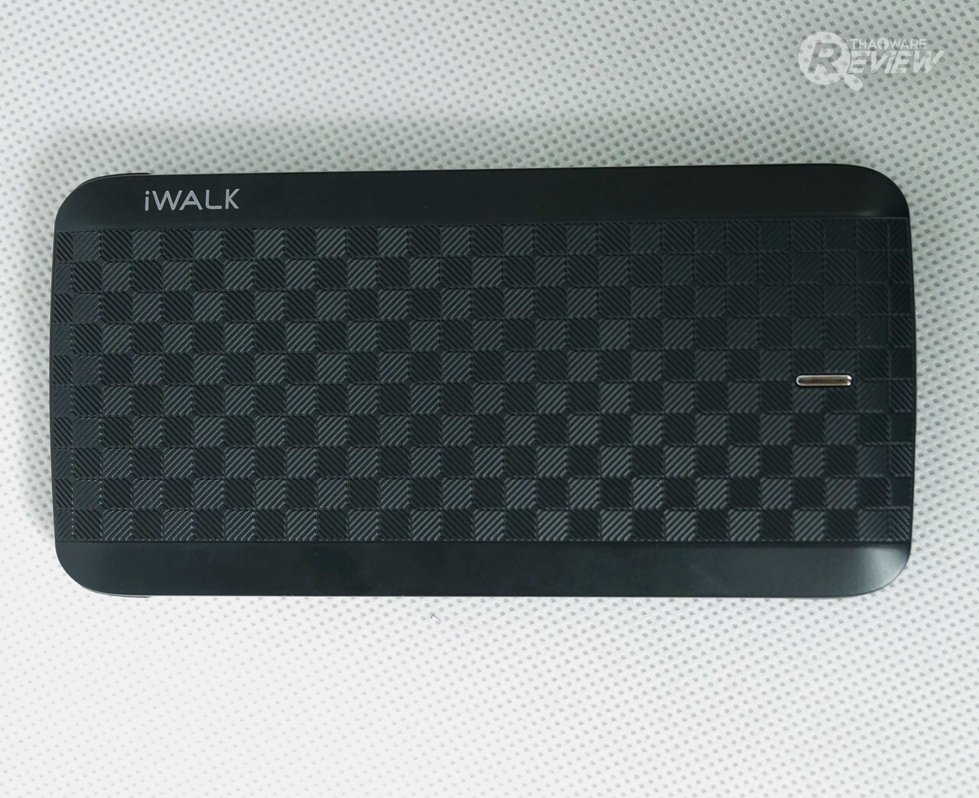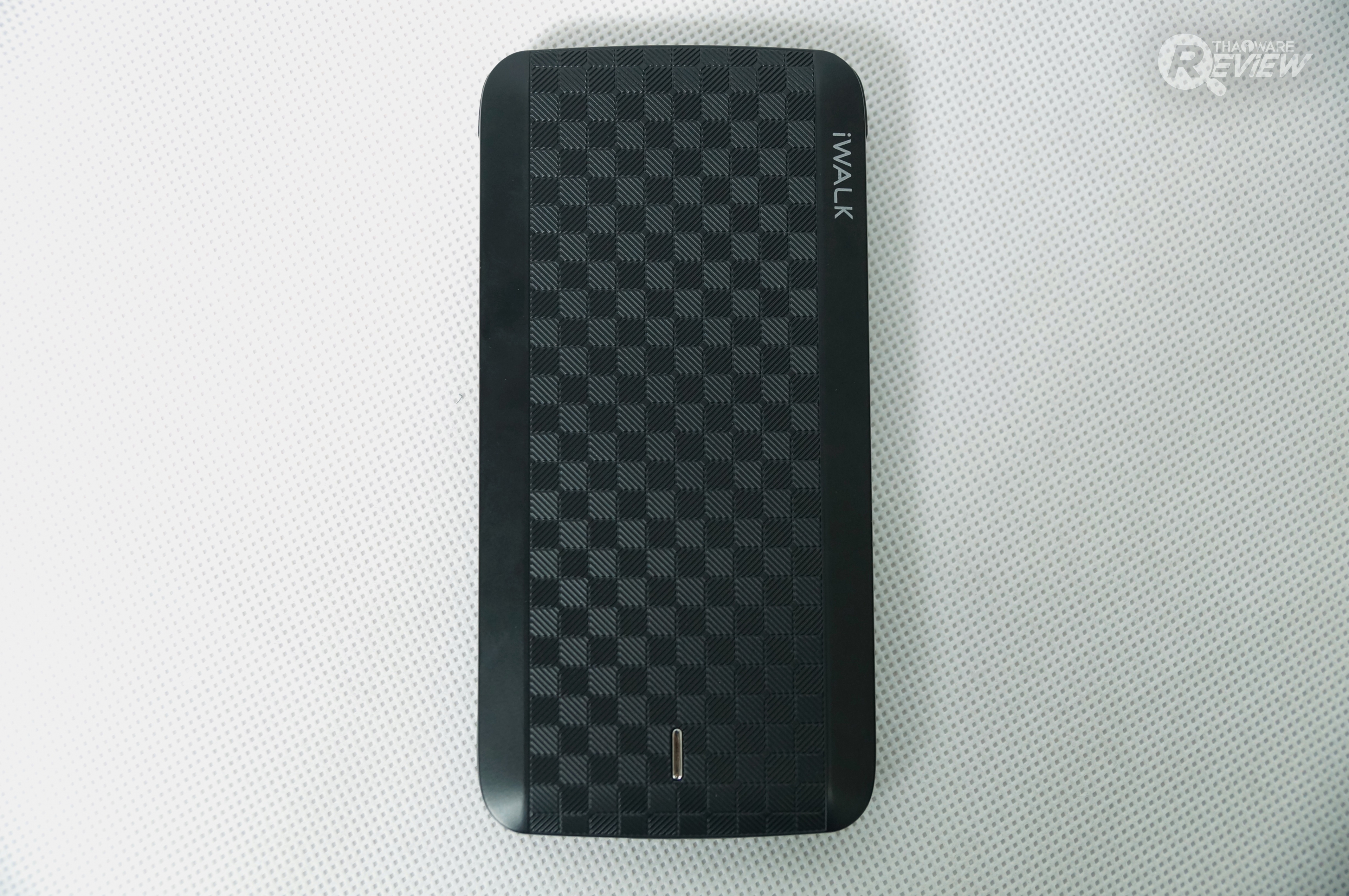 ตัวพาวเวอร์แบงค์ดีไซน์เป็นลายตาราง ให้ความรู้สึกสวยงาม และยังช่วยให้ไม่ลื่นหลุดมือง่ายๆ มีไฟ LED บอกสถานะแบตเตอรี่ 4 ระดับ และชื่อแบรนด์ iWALK อยู่ด้านบน