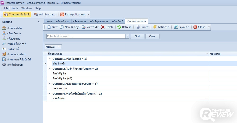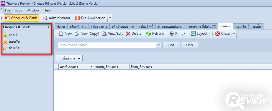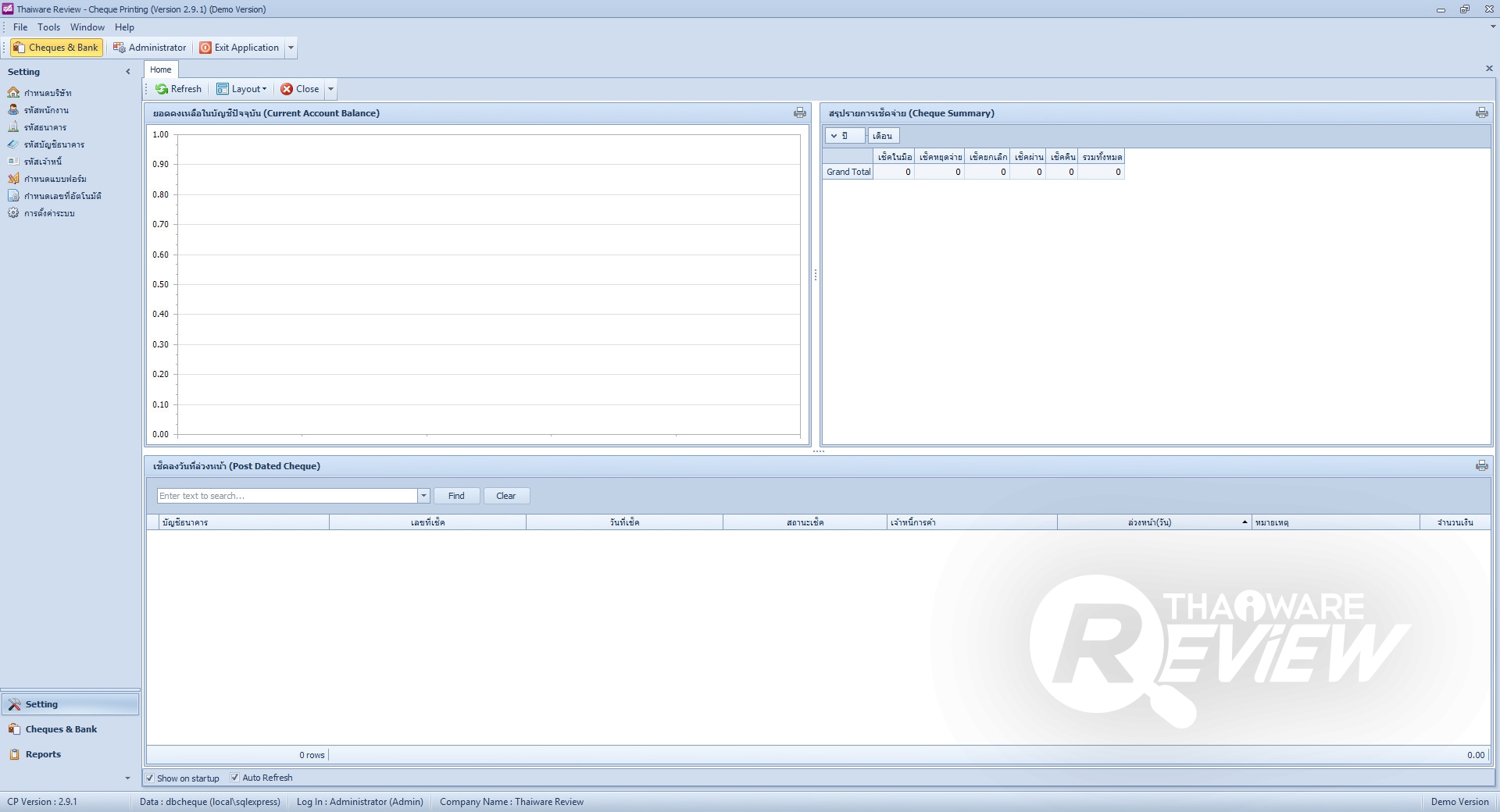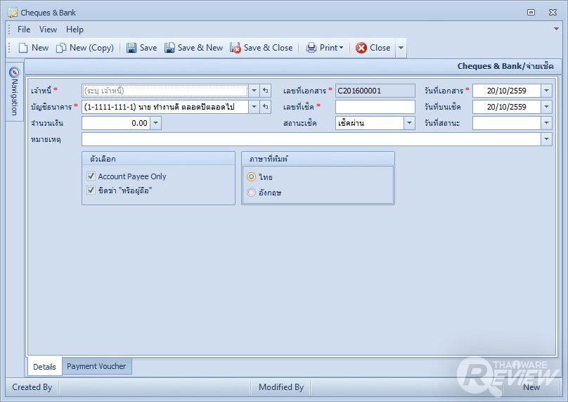 mØuanสำหรับรีวิวนี้ ทางทีมงานไทยแวร์มีโปรแกรม พิมพ์เช็คสำหรับงานองค์กร ที่ชื่อว่า Cheque Printing & Management มาแนะนำให้ชมกัน ซึ่งสำหรับโปรแกรมตัวนี้ เป็นโปรแกรมที่มีหน้าตา UI ค่อนข้างสะอาดเรียบง่าย ดูทันสมัยและเป็นสากลมากๆ เลย โดยตัวโปรแกรมจะเป็นยังไงบ้างนั้น ลองโหลด โปรแกรม Cheque Printing & Management ติดตั้งและลองใช้งานไปพร้อมๆ กันได้เลย