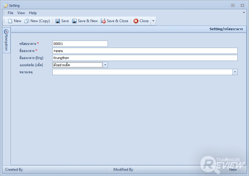 ต่อมาเป็นส่วนของข้อมูล 'รหัสธนาคาร' ที่เราสามารถเพิ่มเอาไว้ เป็นข้อมูลส่วนกลางไปใช้งานร่วมกับส่วนอื่นๆ ได้ โดยมีส่วนสำคัญที่ต้องกรอก ก็คือรหัสธนาคารและชื่อธนาคาร