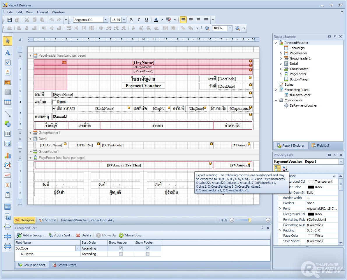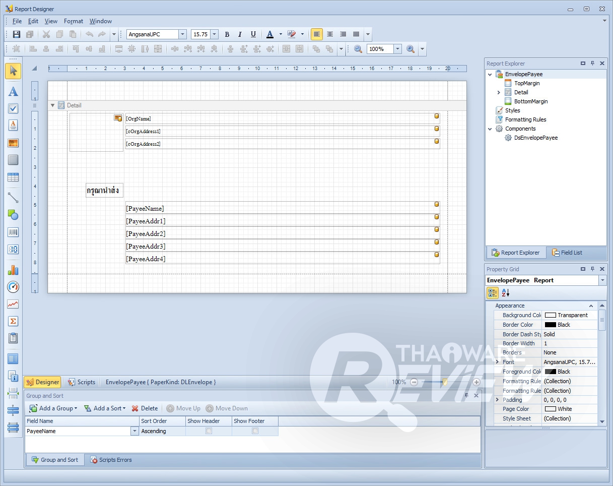 ในเมนู 'กำหนดแบบฟอร์ม' นี้ จะเป็นส่วนที่เราสามารถออกแบบฟอร์มในส่วนต่างๆ ได้แก่ เช็ค ใบสำคัญจ่าย ซองจดหมายและฟอร์มเซ็นรับเช็ค ให้อยู่ในรูปแบบที่องค์กรของเราใช้งานได้ โดยแต่ละส่วนเมื่อกด New เข้าไปสร้างฟอร์มใหม่ จะมีเครื่องมือต่างๆ มากมายคล้ายกับโปรแกรมออกแบบ โดยแต่ละส่วน มีลักษณะดังนี้