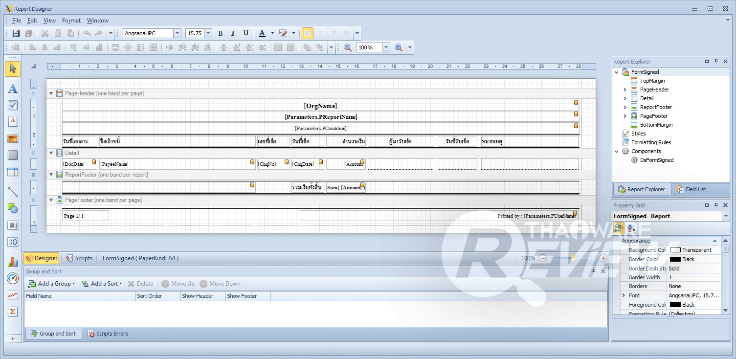 ต่อมาเป็นเมนูหลักอันสุดท้าย ที่จะขาดไม่ได้สำหรับองค์กรต่างๆ นั่นก็คือการทำรายงานสรุปผลนั่นเอง ซึ่งในโปรแกรม Cheque Printing & Management นี้ ผู้ใช้งานสามารถจัดทำเอกสารรายงานสรุปผล ได้จากเมนูทั้งหมด 4 รายการด้วยกัน ได้แก่ รายงานเช็คจ่าย, รายงานการเคลื่อนไหว, รายงานยอดคงเหลือ และฟอร์มเซ็นรับเช็ค โดยหน้าตา UI และแบบฟอร์มเอกสารที่ออกมาของแต่ละรายการจะเป็นดังนี้