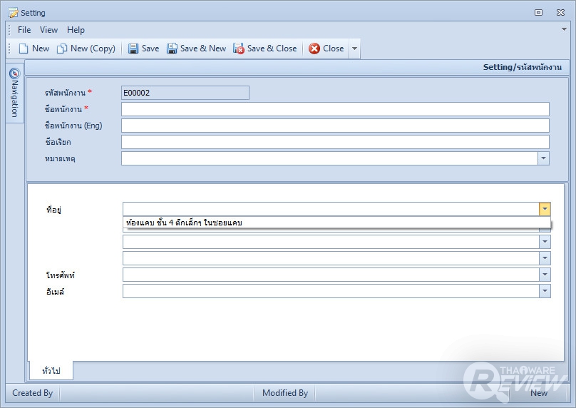 ลองมาดูในส่วนของการเพิ่มข้อมูลของเมนู 'รหัสพนักงาน' กันดีกว่า โดยกดที่ปุ่ม New