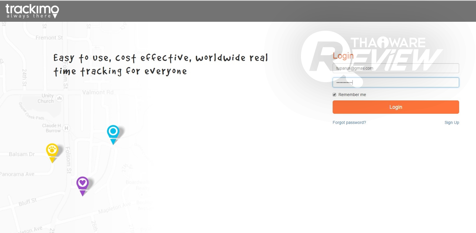 ทำการดาวน์โหลดติดตั้งแอปพลิเคชัน Trackimo จากนั้นทำการ Log In เลือกชื่ออุปกรณ์ใช้งาน หลังจากทดลองการใช้งานรู้สึกว่าการใช้งานผ่านแอปพลิเคชันค่อนข้างสะดวกมาก เรียกว่าง่าย และเร็วกว่าอุปกรณ์จำพวก PC หรือ โน้ตบุ๊คเสียอีก เพราะไม่ว่าจะอยู่ที่ไหน เราก็สามารถเช็คสถานะได้เลยทันที