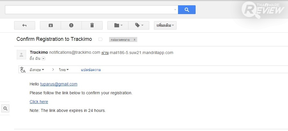 จากนั้นระบบจะทำการส่งอีเมลตอบกลับ ให้เลือกที่ Click here เพื่อยืนยันตัวตน