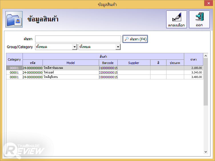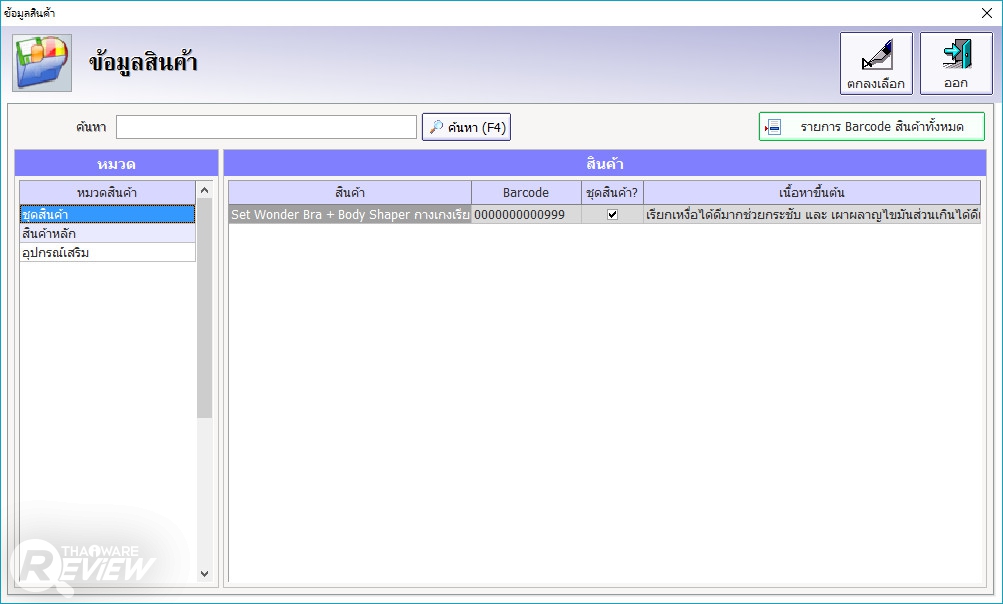 ในหน้าต่างข้อมูลสินค้า จะพบกับสินค้าต่างๆ ที่ถูกจัดแบ่งออกตามหมวดหมู่ ได้แก่ ชุดสินค้า สินค้าหลัก และอุปกรณ์เสริม เราสามารถคลิกเลือกสินค้าที่ต้องการขาย และกดปุ่ม 'ตกลงเลือก' ด้านขวาบนได้เลย