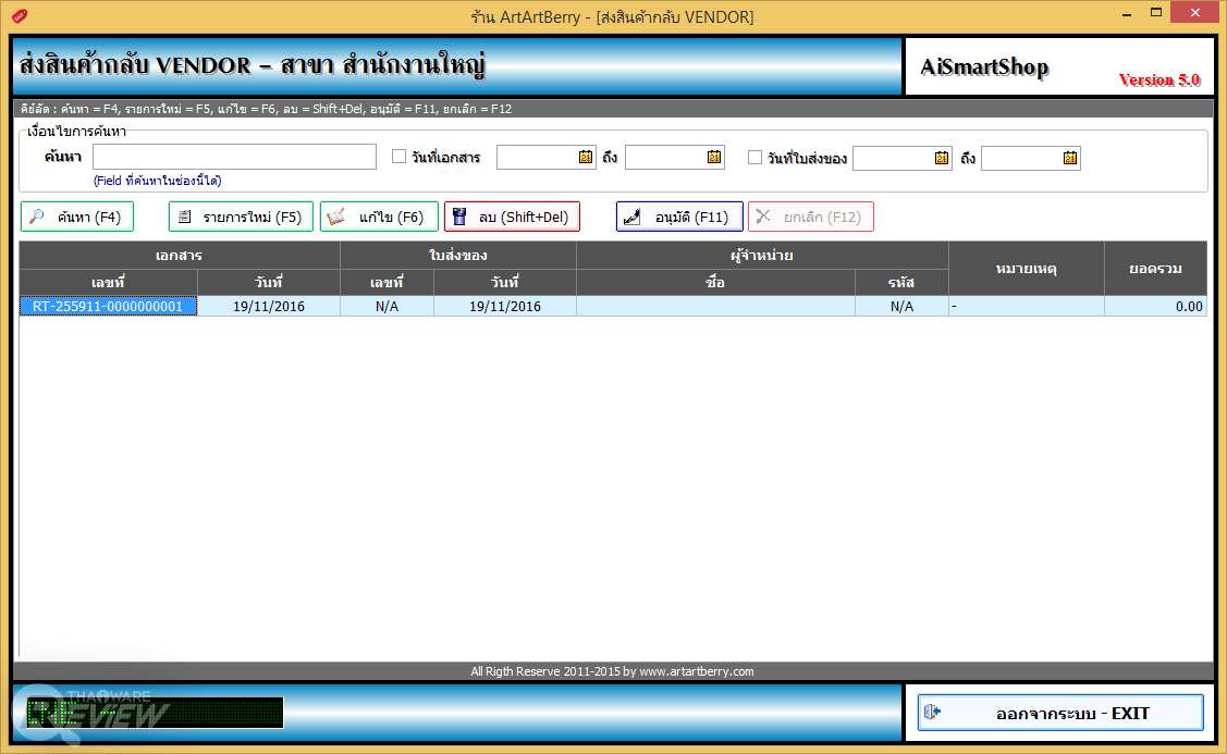 สำหรับหน้าตาและการใช้งานของเมนู ส่งสินค้ากลับ VENDOR ก็จะเหมือนกับ รับสินค้า VENDOR เช่นกัน ทั้งการอนุมัติ หรือจัดการรายการสั่งซื้อต่างๆ