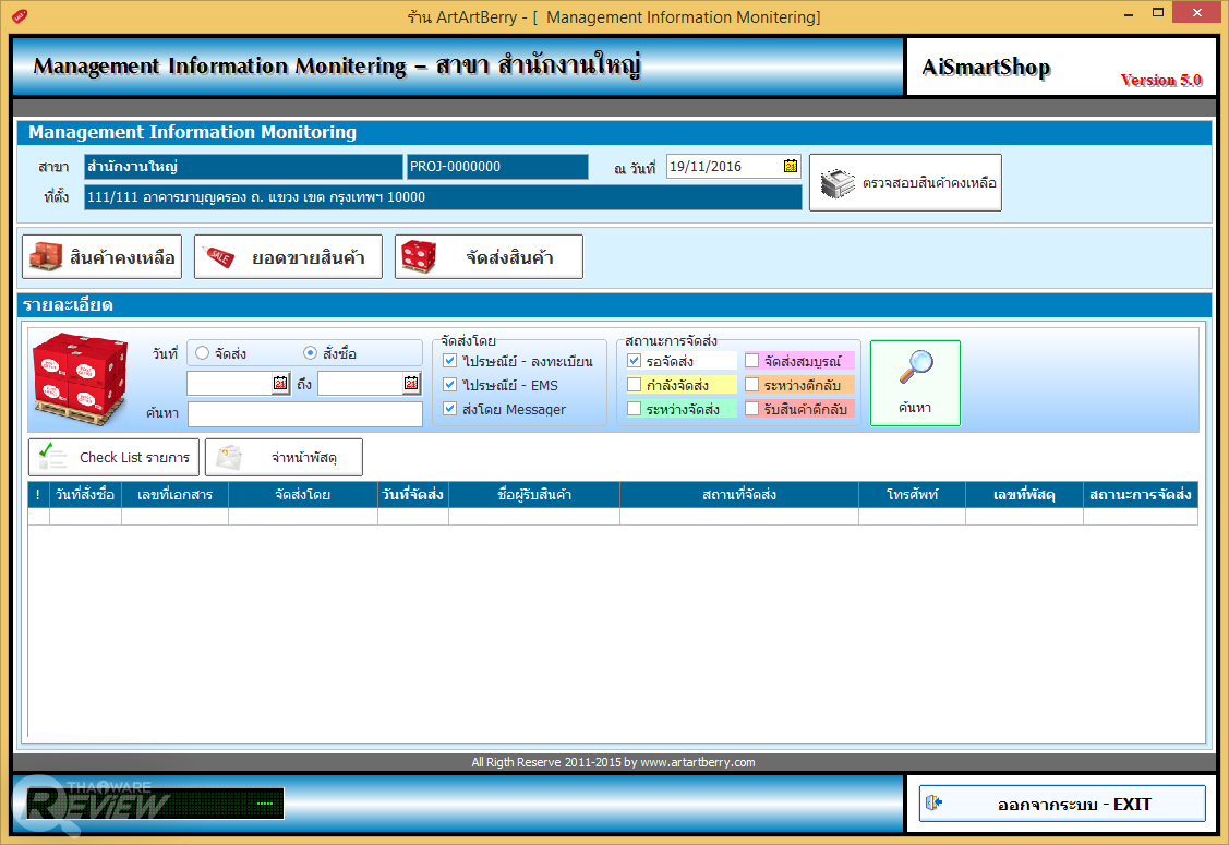 2. ควบคุมการจัดส่งสินค้า (ควบคุมการจัดส่งสินค้าให้ลูกค้า)