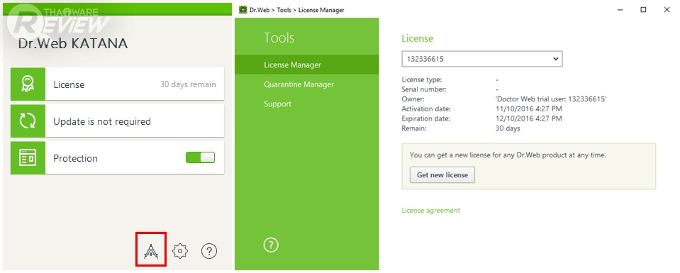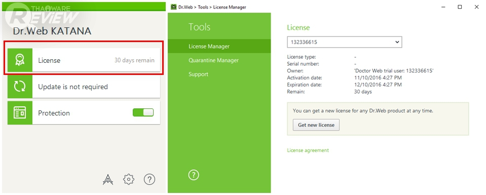 โปรแกรม Dr.Web KATANA เป็น Shareware ทดลองใช้งานได้ฟรี 30 วัน หากรู้สึกถูกอกถูกใจโปรแกรมนี้ สามารถเข้ามาซื้อผ่าน Thaiware Shop