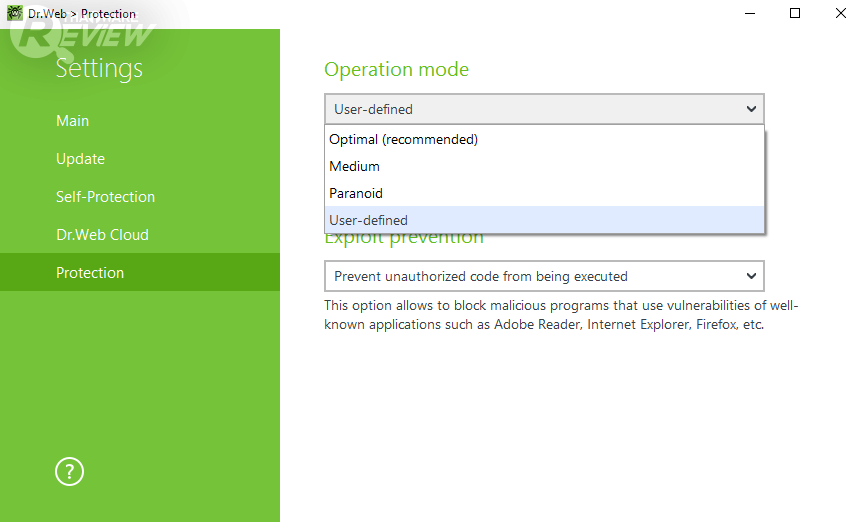 Exploit prevention - ตัวเลือกนี้จะเป็นตัวช่วยป้องกันไม่ให้โปรแกรมใช้ช่องโหว่ของ ระบบ Windows เพื่อเข้ามาปรับเปลี่ยนระบบภายใน ซึ่งคุณสามารถเลือกใช้งานได้ 3 ระดับ