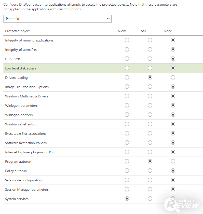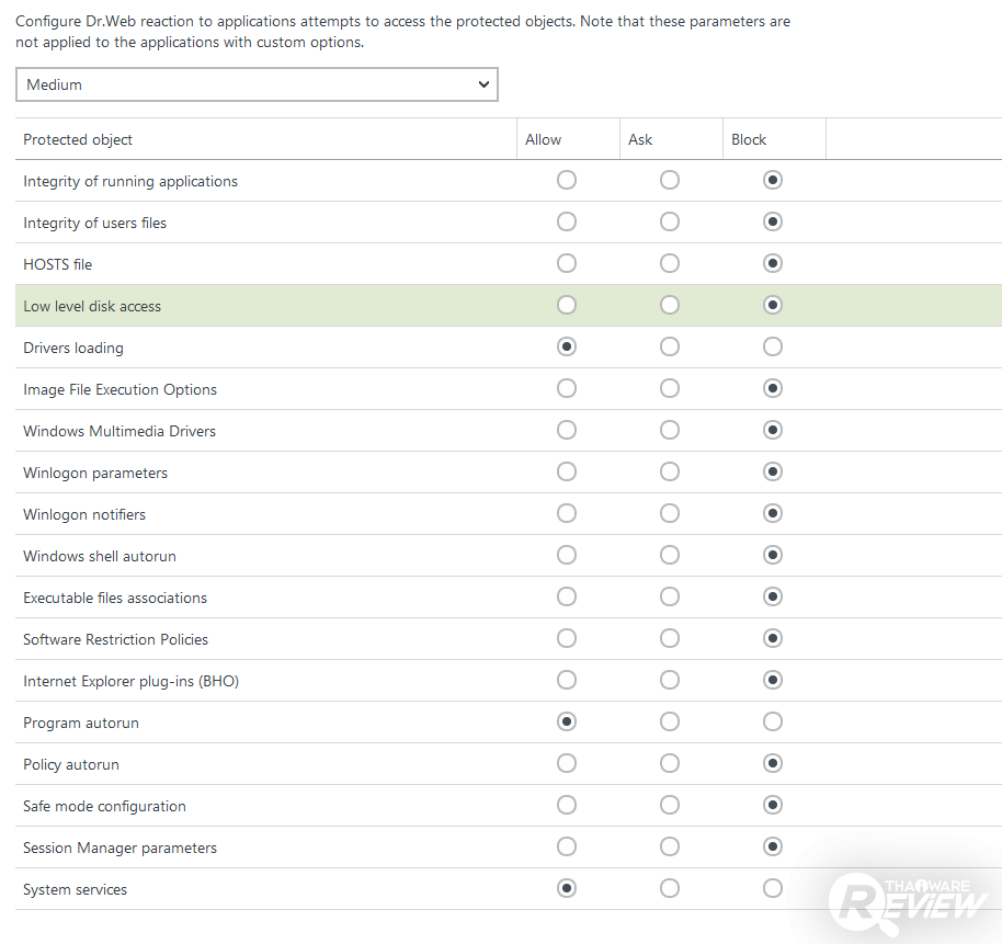 เพิมเติม : หากคุณไม่พอใจกับการตั้งค่าทั้ง 3 ระดับของโปรแกรม Dr.Web KATANA คุณก็สามารถเข้ามาปรับแต่งเองได้ตามต้องการเช่นกัน