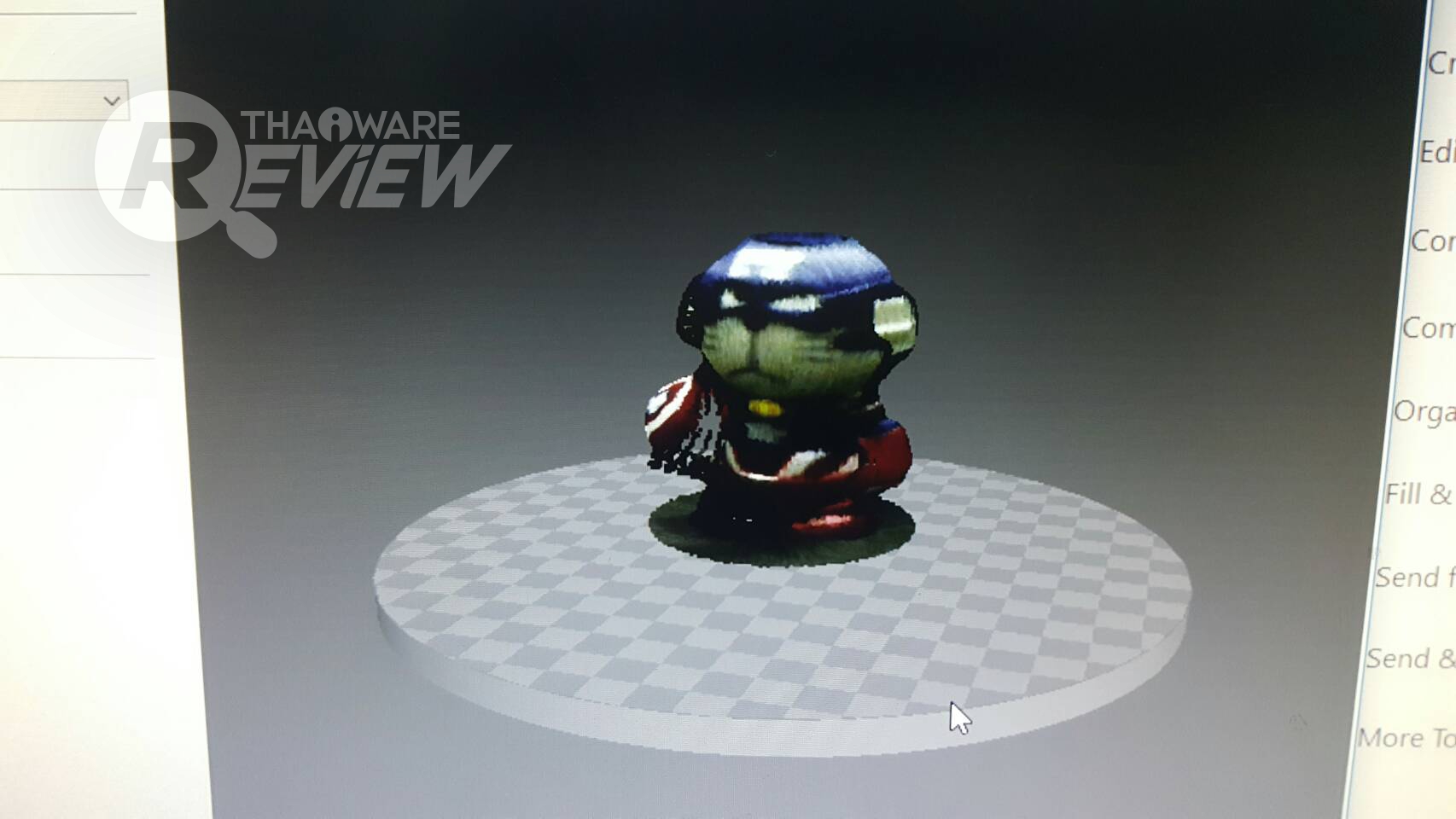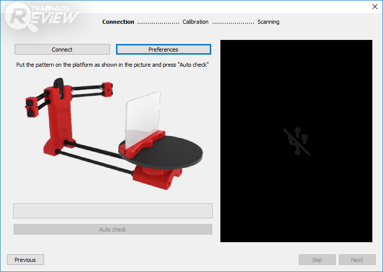 หลังจากตั้งค่าทุกอย่างเรียบร้อยแล้ว การสแกน ให้เราเอาวัตถุวางบนฐาน แล้วกดสแกนได้เลย ฐานจะหมุนเองอัตโนมัติ และมีเลเซอร์กระพริบสแกนเป็นระยะ ขั้นตอนนี้จะใช้เวลาประมาณพอสมควรครับ 10-15 นาที