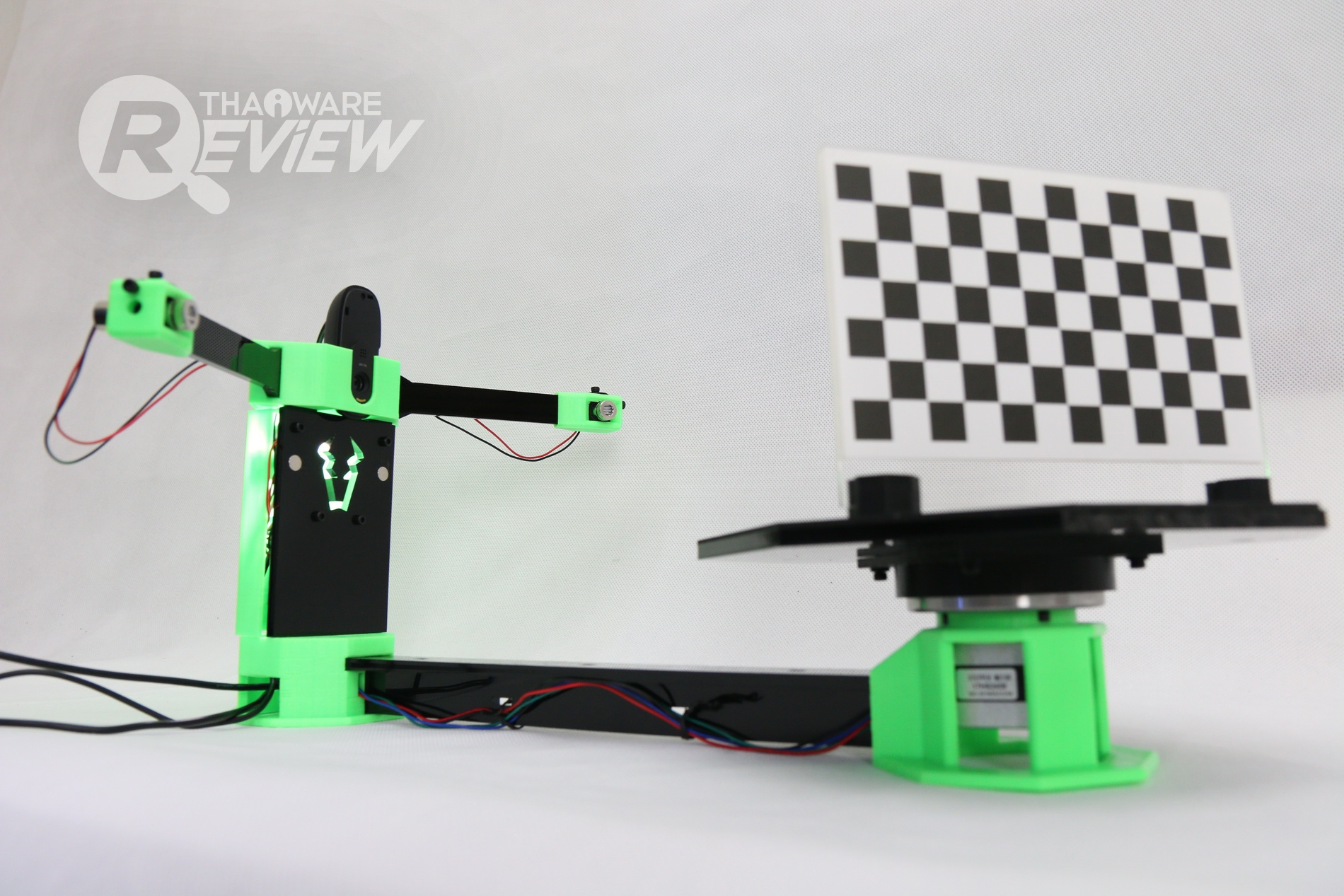 หลังจากประกอบร่างเสร็จแล้ว หน้าตาของ CowTech Ciclop 3D Scanner จะออกมาดังรูปด้านบนครับ ใช้พื้นที่ในการทำงานน้อยมาก ทั้งนี้การใช้งานควรยึดเครื่องกับฐานให้แน่นๆ นะครับ เพราะเวลาที่มอเตอร์หมุนอาจจะทำให้เกิดการสั่นสะเทือน วัตถุที่อยู่บนแท่นอาจจะสั่นจนขยับเขยื้อนได้