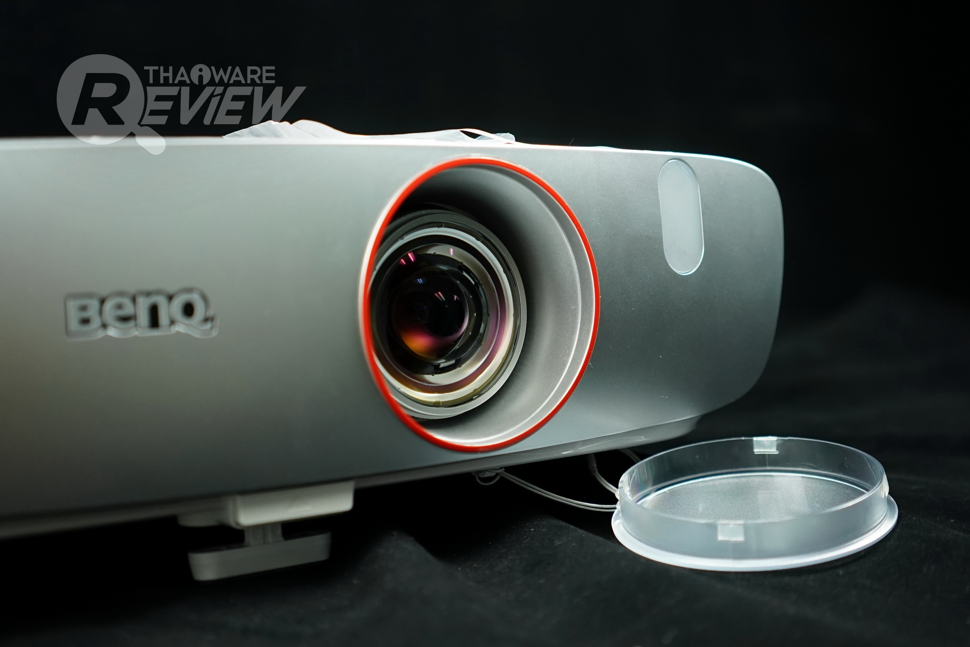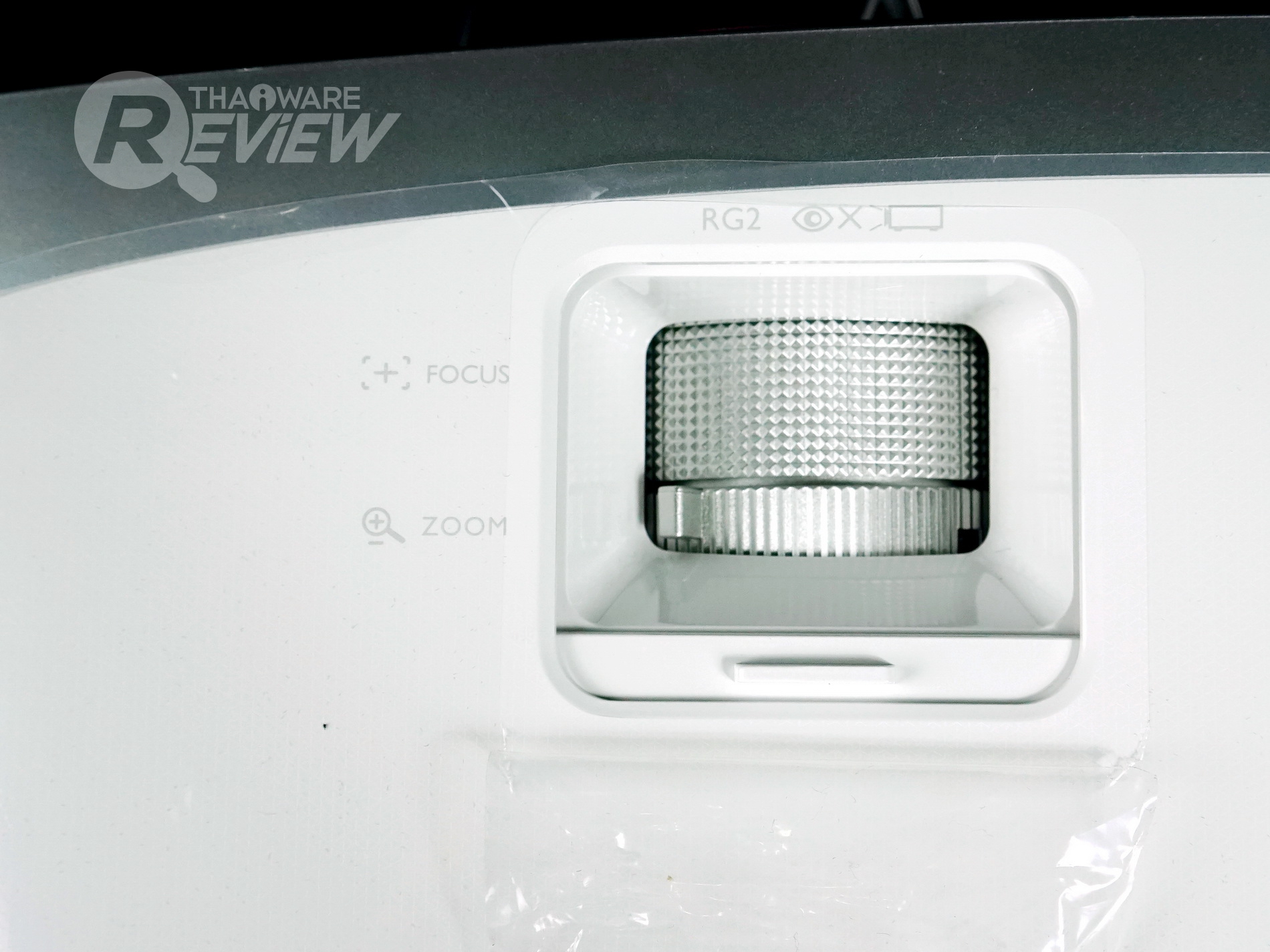 เลนส์ฉายภาพอยู่ที่ด้านขวาของตัวเครื่องด้านหน้า มีขอบสีแดงด้วยตัดกับโทนสีขาวเงิน ช่วยให้เครื่องไม่ดูน่าเบื่อจนเกินไป