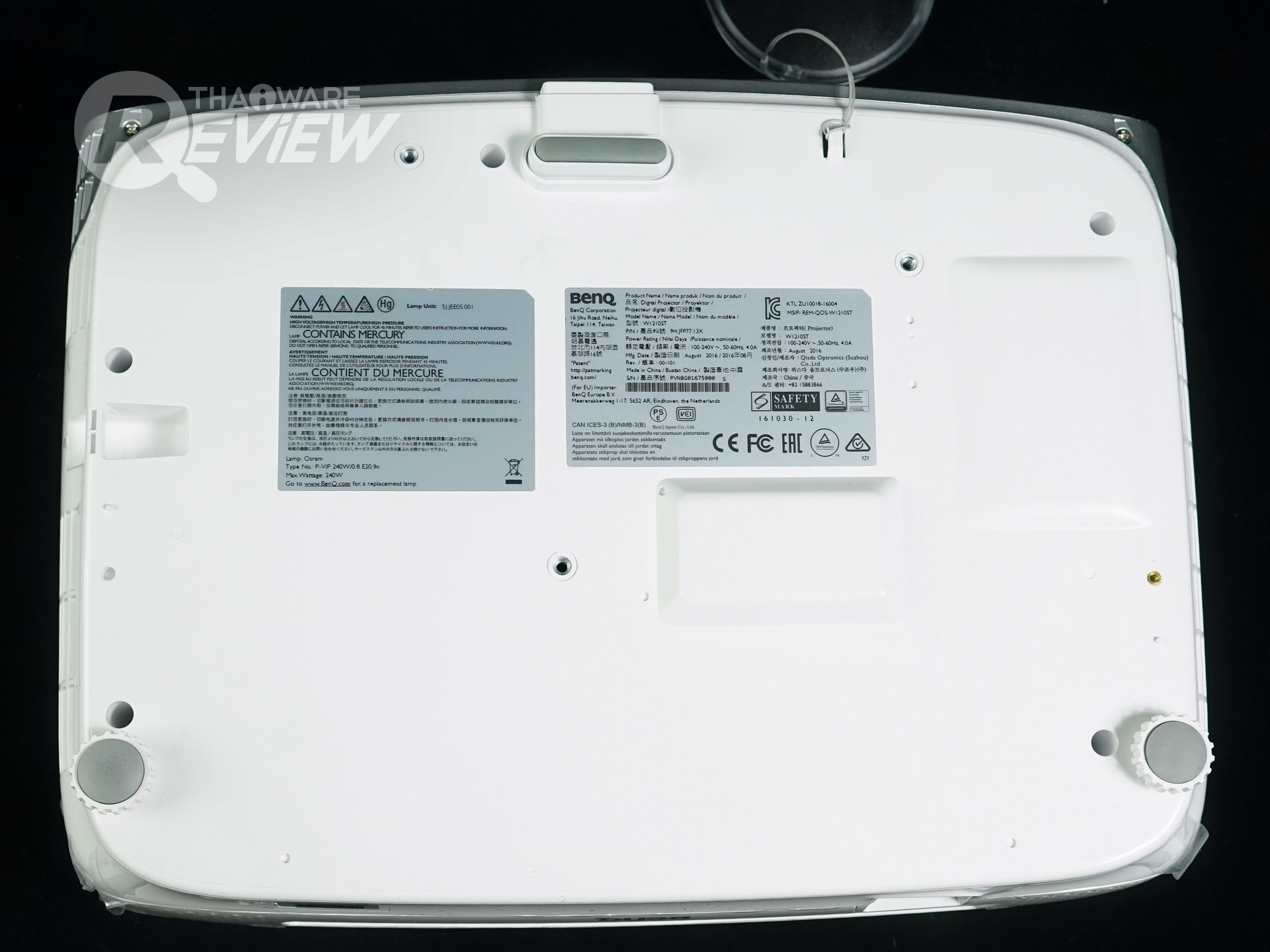 ด้านล่างจะมีรูสำหรับขันสกรูยึดเข้ากับขา ในกรณีที่ต้องการติดตั้งตัวโปรเจคเตอร์เข้ากับเพดานห้องด้วยครับ