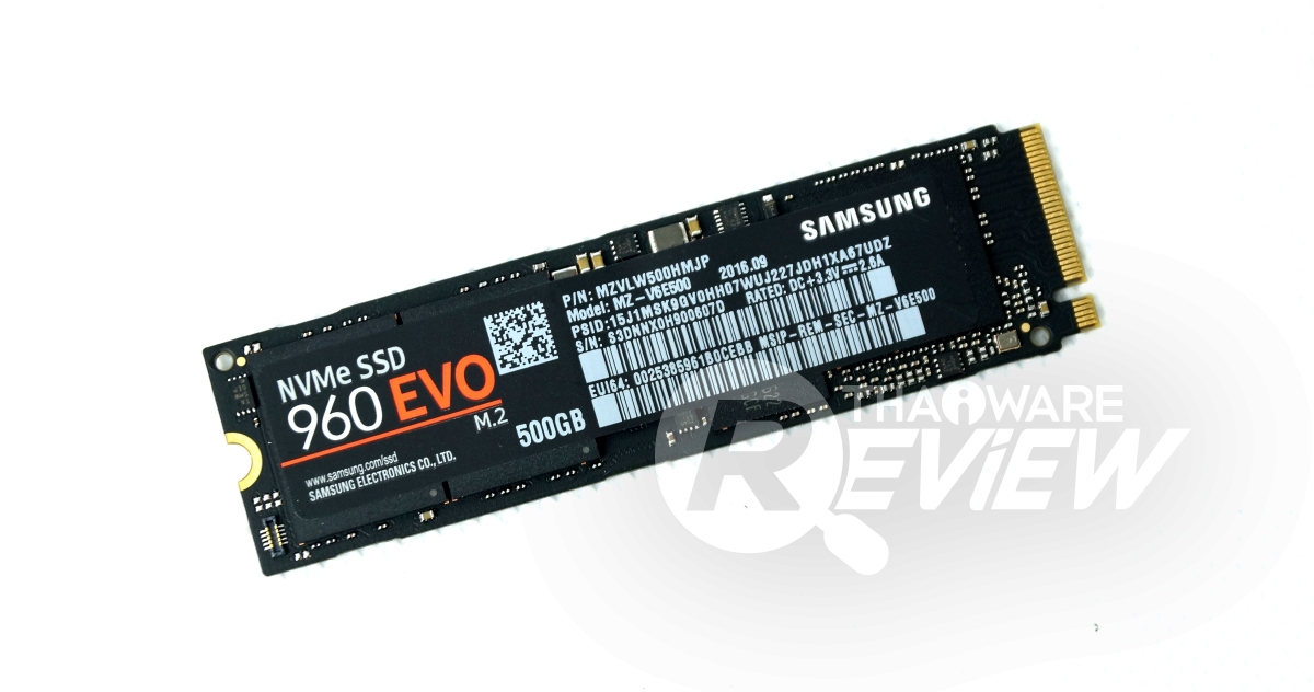 โดย SSD ของ Samsung ตัวที่เราได้รับมาทดสอบอยู่ในซีรีย์ NVMe SSD 960 EVO ซึ่งเป็น SSD รุ่นประสิทธิภาพสูงของทางแบรนด์ มีให้เลือกซื้อ 3 ขนาดความจุคือ 250GB , 500GB (เป็นรุ่นที่เราได้รับมาทดสอบ) และขนาด 1TB ซึ่งความจุสูงเพียงพอที่จะใช้เป็น Storage ตัวเดียวในเครื่องได้อย่างสบายๆ โดยสเปกระบุว่า Storage ในซีรีย์ NVMe SSD 960 EVO มีความเร็วในการอ่านข้อมูลสูงสุดที่ 3,200MB/s และความเร็วในการเขียนข้อมูลสูงสุดที่ 1,900MB/s ซึ่งจัดว่าเป็น SSD ที่ทำความเร็วในการอ่าน/เขียนข้อมูลได้สูงเอามากๆ เลยทีเดียว (เทียบกับ SSD แบบ M.2 ทั่วๆ ไป ที่ทำความเร็วในการอ่าน/เขียนข้อมูลได้ที่ 1,800 / 600MB/s)