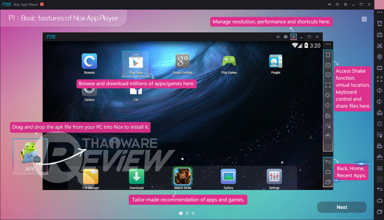 FamousKก่อนหน้านี้เราเคยรีวิวเจ้า Bluestack โปรแกรมสำหรับใช้เล่นแอปพลิเคชันของแอนดรอยด์บนเครื่อง PC หรือเครื่อง Mac กันมาแล้ว คราวนี้เราจะมาแนะนำอีกโปรแกรมหนึ่งที่ใช้เล่นแอปฯ ของแอนดรอยด์เหมือนกัน แต่ก็ไม่เหมือนเสียทีเดียว เพราะโปรแกรมตัวนี้มีฟีเจอร์พิเศษและแตกต่างจากอีมูเลเตอร์ตัวอื่น ที่บอกเลยว่ามันจะช่วยอำนวยความสะดวกให้คอเกมส์สามารถเล่นเกมส์ได้อย่างลื่นไหล และสนุกมากขึ้นกว่าเดิม (ขึ้นอยู่กับสเปกของเครื่องคอมพิวเตอร์ที่ใช้เล่น) ซึ่งโปรแกรมนั้นก็คือ NoxPlayer