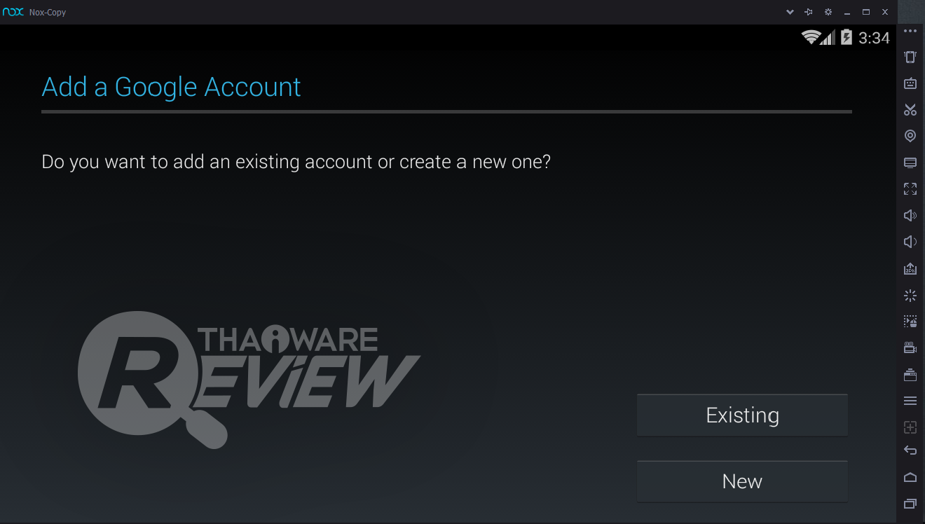 สำหรับใครที่มีบัญชี Google อยู่แล้วให้คลิก ที่มีอยู่ (Existing) ส่วนใครยังไม่มีก็สามารถสมัครได้ด้วยการคลิก ใหม่ (New)