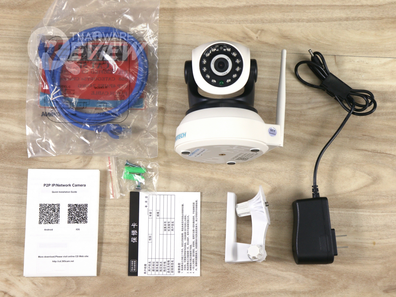 ตัวกล้องทำจากพลาสติกทั้งตัว น้ำหนักค่อนข้างเบา เสาอากาศติดอยู่กับตัวกล้องเลยไม่สามารถถอดได้, ด้านหลังจะมีช่องสำหรับใส่การ์ด MicroSD, ช่องเสียบสายแลน และรูสำหรับต่ออะแดปเตอร์จ่ายไฟ