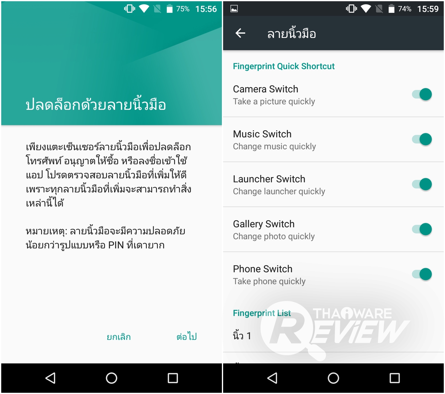 นอกเหนือจากการใช้ฟีเจอร์ทั้ง 5 รูปแบบแล้ว คุณยังสามารถใช้ลายนิ้วมือเพื่อให้สิทธิ์การซื้อ และเข้าถึงแอปพลิเคชันได้ อีกด้วย ซึ่งการตั้งค่าระบบสแกนลายนิ้วมือ คุณสามารถบันทึกลายนิ้วมือได้มากสุด 5 ลายนิ้วมือ และเมื่อดูจากตำแหน่งของตัวสแกนลายนิ้วมือแล้ว นิ้วที่ใช้สะดวกที่สุดน่าจะเป็นนิ้วชี้