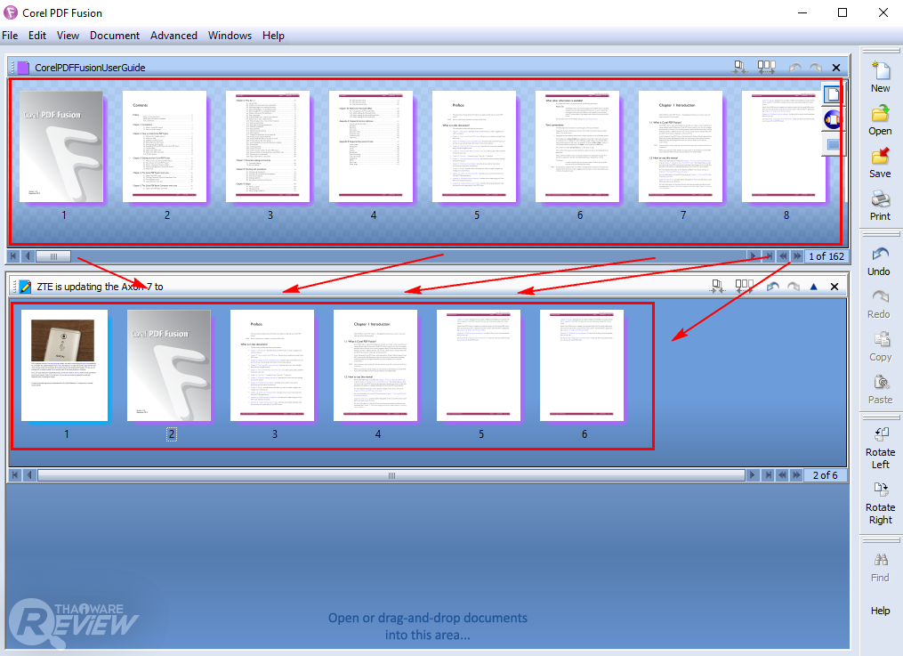 ไม่เพียงแต่ จะสามารถรวมไฟล์ทั้งหมด ไว้ในไฟล์เดียวกันได้เท่านั้น เรายังเลือกหน้าที่ต้องการจากไฟล์อื่น ได้อย่างอิสระ ยกตัวอย่างเช่น ต้องการหน้า 1, 3, 5 ของไฟล์ด้านก็บน ก็สามารถลากวาง ได้ทันที ซึ่งหลังจากที่รวมไฟล์ เรียบร้อยแล้ว ผลลัพธ์ที่ออกมา คือ เนื้อหาทั้งหมดมีความสมบูรณ์ 100% ไม่ขาดตกบกพร่อง หรือ มีความผิดพลาดใดๆ ทั้งในรูปแบบเอกสารที่เป็น ภาษาไทย, ภาษาอังกฤษ หรือแม้กระทั่งรูปภาพก็ตาม