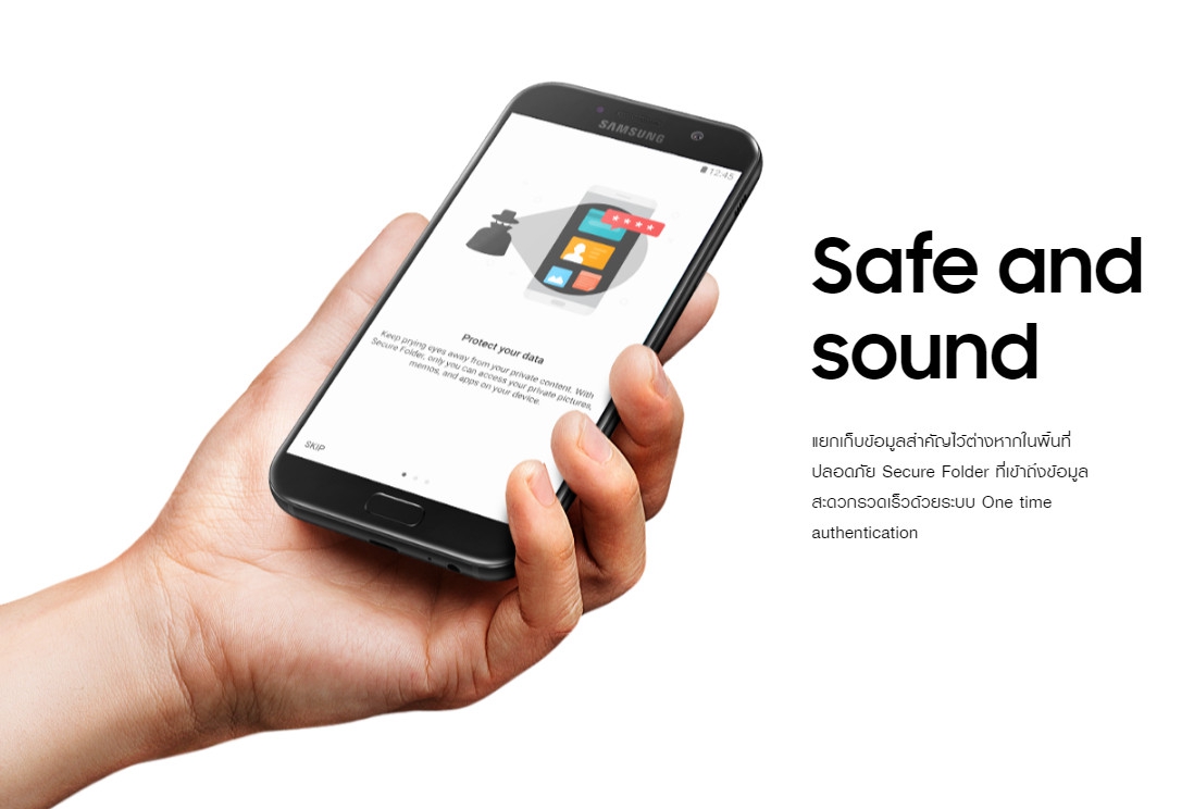 อีกฟีเจอร์ที่แจ่มมากของ Galaxy A ซีรีย์ 2017 คือ Secure folder ที่ช่วยยกระดับความเป็นส่วนตัวในการใช้งานสมาร์ทโฟน ทำให้สามารถเล่น Facebook หรือ Line ได้ 2 แอคเคาท์ในเครื่องเดียว แอคเคาท์หนึ่งอาจจะใช้ติดต่อเรื่องงาน อีกแอคเคาท์ใช้ส่วนตัว และ Secure folder ยังใช้เก็บไฟล์ภาพถ่ายส่วนตัว และใช้เก็บแอปฯ ที่ไม่อยากให้ใครมาเห็นได้ด้วยนะครับ