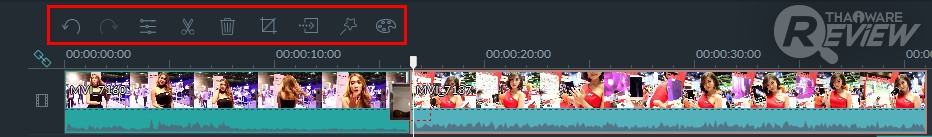 นอกจากเครื่องมือหลักๆ แล้ว ถ้าเราไปกดเลือก Track วิดีโอหรือไฟล์อื่นๆ ในไทม์ไลน์ ก็จะมีเครื่องมือเล็กๆ น้อยๆ ให้ใช้งานกันอีก ตั้งแต่การตัดวิดีโอ ครอบตัด แช่ภาพพร้อมเอฟเฟคซูม หรือลบวิดีโอทิ้ง รวมทั้งการแต่งแสงและใส่เอฟเฟคเพิ่มเติมอีกด้วย