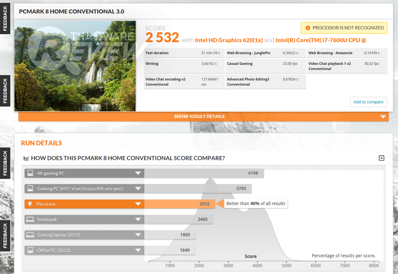 สำหรับ HP EliteBook x360 1030 G2 ได้รับมาทดสอบ เป็นรุ่นที่ใช้งาน Windows 10 Pro แบบ 64 บิต, Intel Core i7-7600U, แรม 8GB และฮาร์ดดิสก์ SSD ความจุ 256GB ได้ผลการทดสอบออกมาตามภาพด้านบนเลยครับ