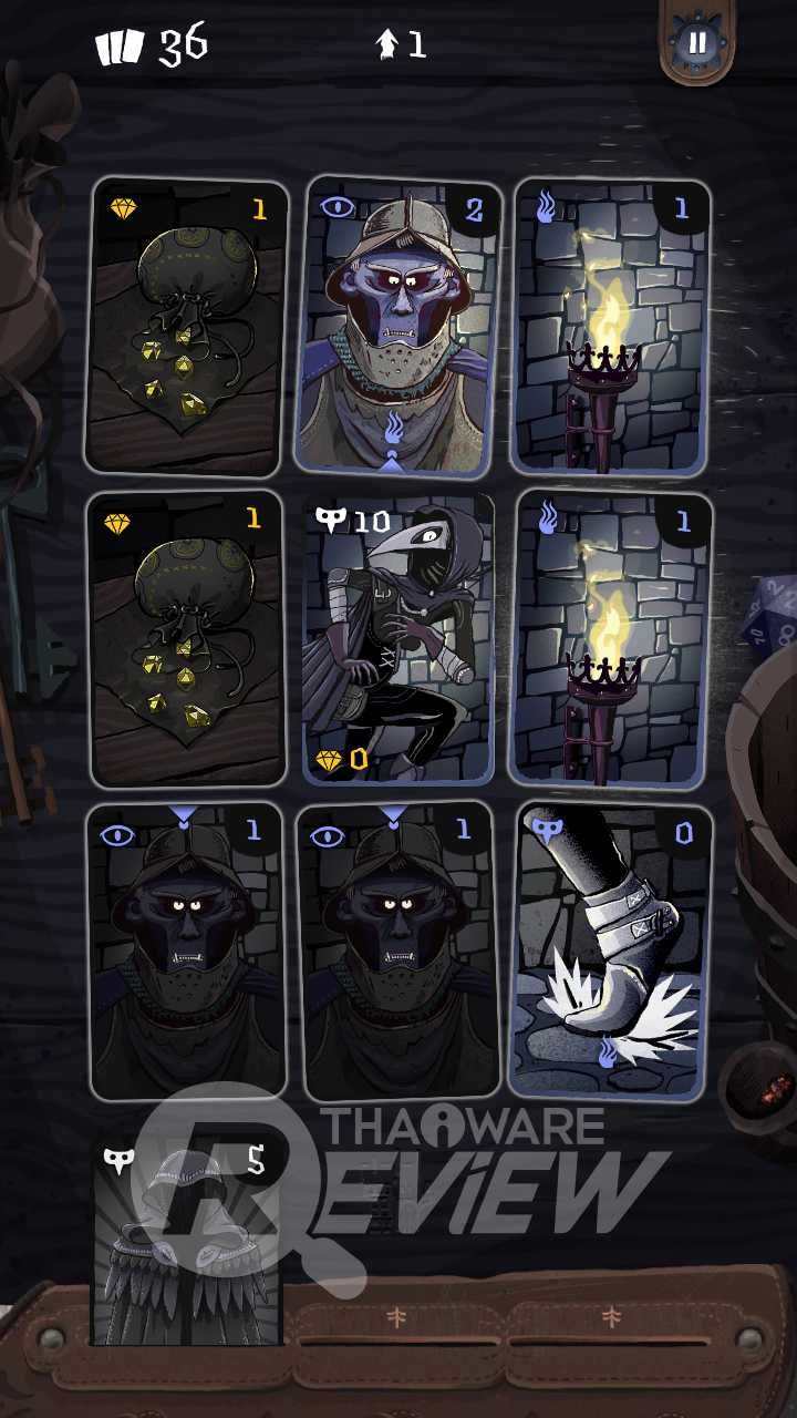 แต่กระนั้นการจะเคลียร์การ์ดที่ติดสถานะดังกล่าว ก็ต้องใช้ค่าลอบเร้นในการหักล้าง ทำให้ผู้เล่นต้องคิดและตัดสินใจในระดับหนึ่ง แต่ไม่ต้องห่วงว่าเราจะเสียค่าลอบเร้นไปอย่างเสียเปล่า เพราะการ์ดหลายใบที่เราเคลียร์นั้น จะมอบประโยชน์หรือสร้างความได้เปรียบให้กับผู้เล่นในภารกิจ เช่น ถ้าผู้เล่นเลือกเคลื่อนที่ไปหยุดอยู่ที่การ์ดรูปลังไม้เป็นใบสุดท้าย เราก็จะได้ค่าลอบเร้นเพิ่มขึ้นมาจำนวน 10 แต้ม หรือถ้าผู้เล่นดับการ์ดคบเพลิงใกล้ๆ กับการ์ดขุมทรัพย์ที่เราต้องขโมย ค่าลอบเร้นที่ผู้เล่นจะต้องหักล้างกับการ์ดขุมทรัพย์ก็จะลดลงเหลืออยู่ในระดับที่น่าพอใจ ฯลฯ