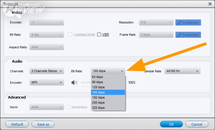 จะมีหน้าต่าง Setting แสดงขึ้นมา เราสามารถเลือกระดับ Bit Rate ซึ่งเป็นตัวกำหนดคุณภาพเสียงของการแปลงไฟล์ได้ตามต้องการครับ (ยิ่งตัวเลขสูงคุณภาพเสียงก็จะดีขึ้น แต่ขนาดไฟล์ก็จะใหญ่ขึ้นด้วย)