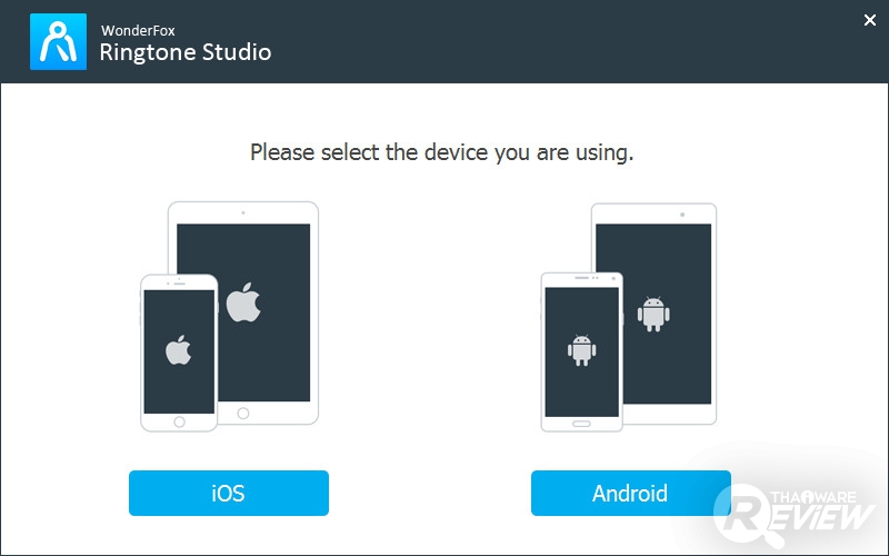 จากนั้นก็จะเข้าสู่หน้าจอที่ให้เราเลือกว่าจะสร้างริงโทนสำหรับ iOS (iPhone ไฟล์เสียงนามสกุล .m4a) หรือ Android (ไฟล์เสียงนามสกุล .mp3) คลิกเลือกได้ตามต้องการเลยครับ