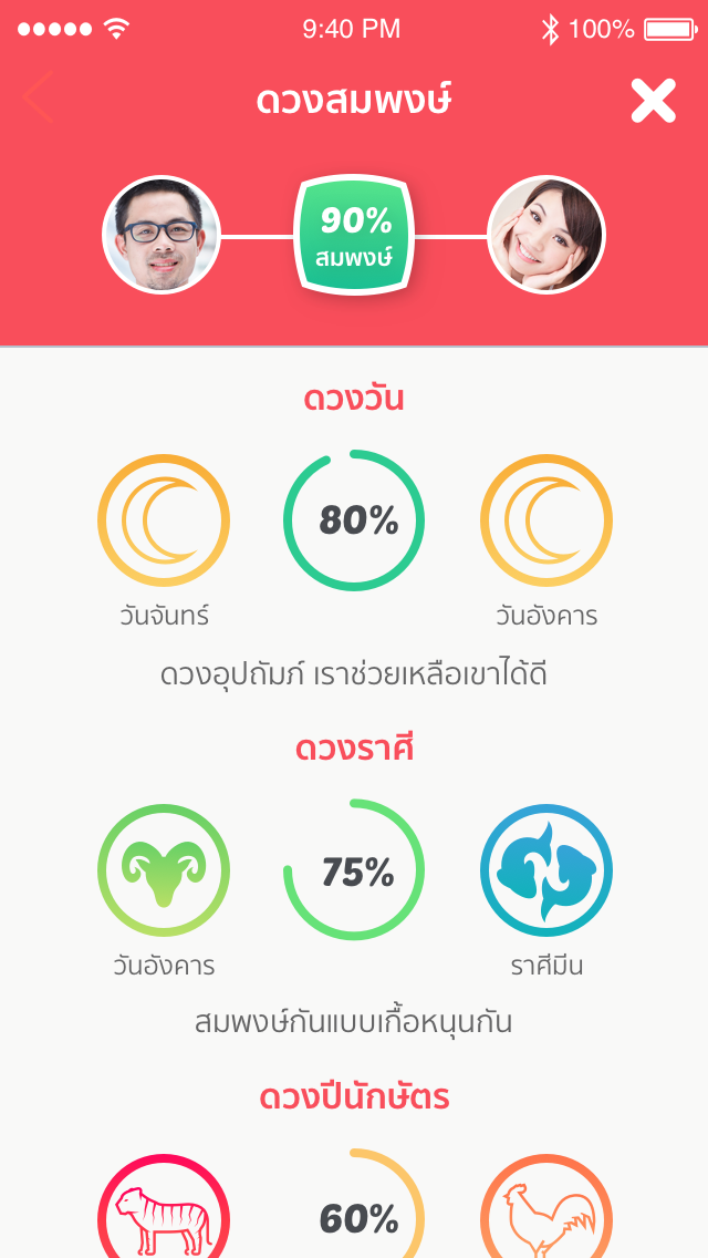 ความน่าสนใจของแอปฯ นี้คือ ระบบค้นหาคู่จากดวงสมพงษ์ แอปฯ จะทำการบอกเปอร์เซ็นต์ดวงสมพงษ์เลยค่ะว่า คุณกับเขาสมพงษ์กันกี่เปอร์เซ็นต์ แล้วก็สามารถกดเข้าไปดูทำนายโชคชะตาราศีได้เลยว่า เมื่อคบกัน จะเป็นคู่ เป็นแฟนกันในลักษณะใดได้บ้าง เช่น เป็นคู่เป็นแฟนแบบคู่ครอง คู่รักกัน เป็นคู่แบบเพื่อนกันสนิท เป็นคู่เป็นแฟนกันแบบผู้อุปถัมภ์ ช่วยเหลือกัน ท่านสมาชิกจะมีดวงสมพงษ์มากน้อยขนาดไหนวัดผลออกมาเป็นเปอร์เซ็นต์ได้เลย เป็นแหล่งข้อมูลที่มีประโยชน์ในการที่เราจะเลือกคบหาดูใจกับใคร