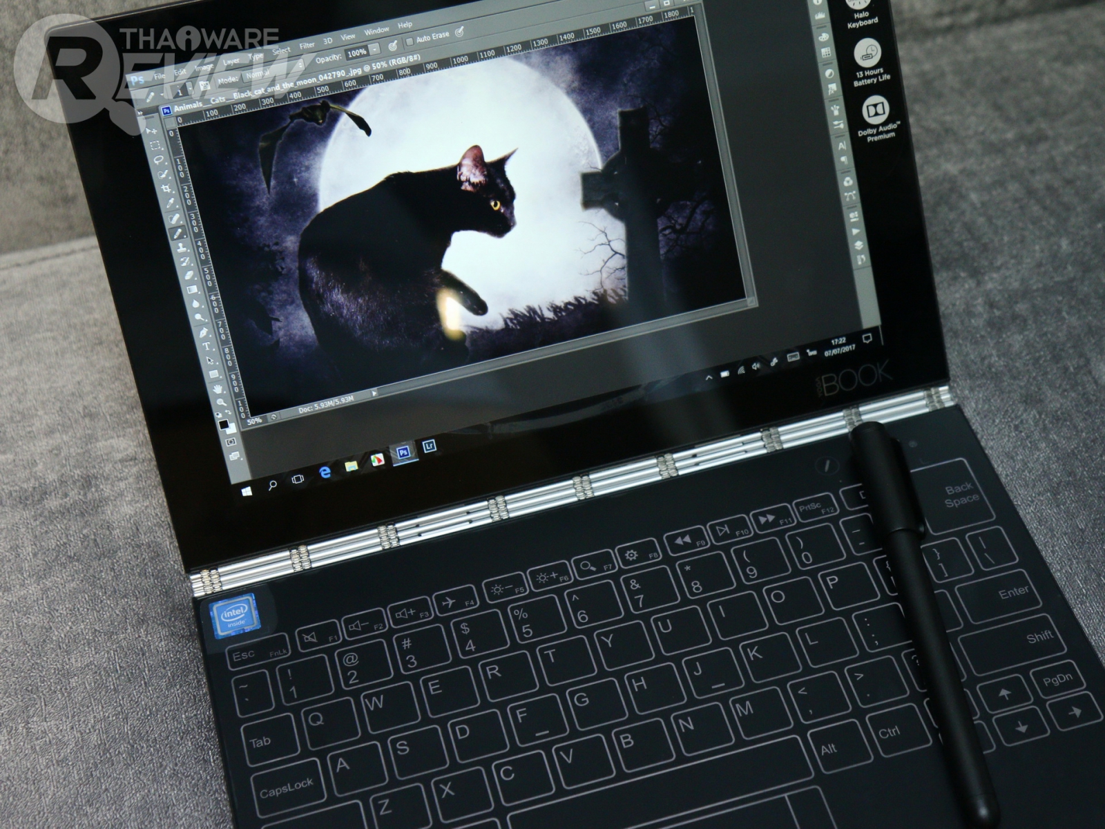 Lenovo Yoga Book เป็นโน้ตบุ๊คที่่มีเอกลักษณ์น่าสนใจ แม้ว่าเครื่องจะไม่ได้มีประสิทธิภาพสูงมาก แต่จุดขายหลัก คือ Creative Pad กับปากกา Real Pen ที่ใส่เข้ามาในเครื่อง เราสามารถวาดรูป, จดบันทึกสิ่งที่ต้องการได้ตลอดเวลา และด้วยดีไซน์ที่ออกแบบมาได้บางและเบามาก ทำให้การพกพาไปใช้งานนอกสถานที่ ไม่เป็นปัญหาแต่อย่างใด