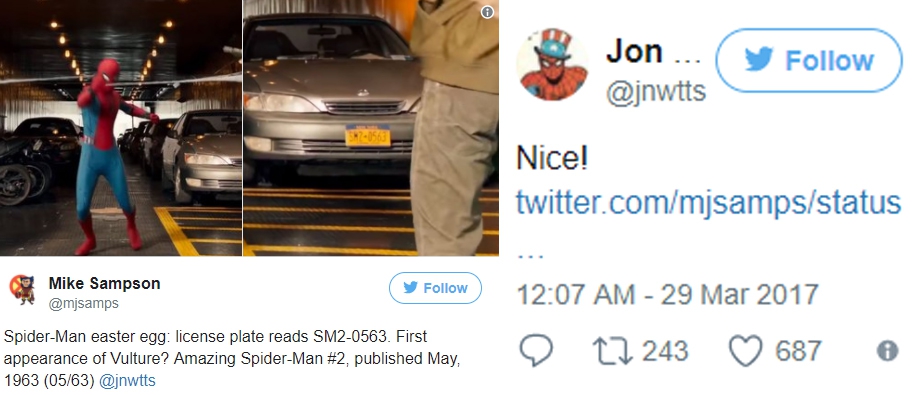 แต่สำหรับ Mike Sampson เขากลับถอดรหัสออกมาได้เป็นวันเวลาที่ Vulture ตัวร้ายหลักลำดับที่สามของสไปเดอร์แมนของเราได้ปรากฎตัวออกมาครั้งแรกบนคอมมิค (ที่ก็ยังเป็นทั้งตัวร้ายหลักในฉบับภาพยนตร์เวอร์ชันล่าสุดนี้ด้วย) โดย SM2 นั้น ย่อมาจาก Amazing Spider-Man 2 ส่วน 0563 คือเดือนและปีที่คอมมิคเล่มดังกล่าวออกครับ นั่นก็คือ พฤษภาคม (05) ปี 1963 นั่นเอง