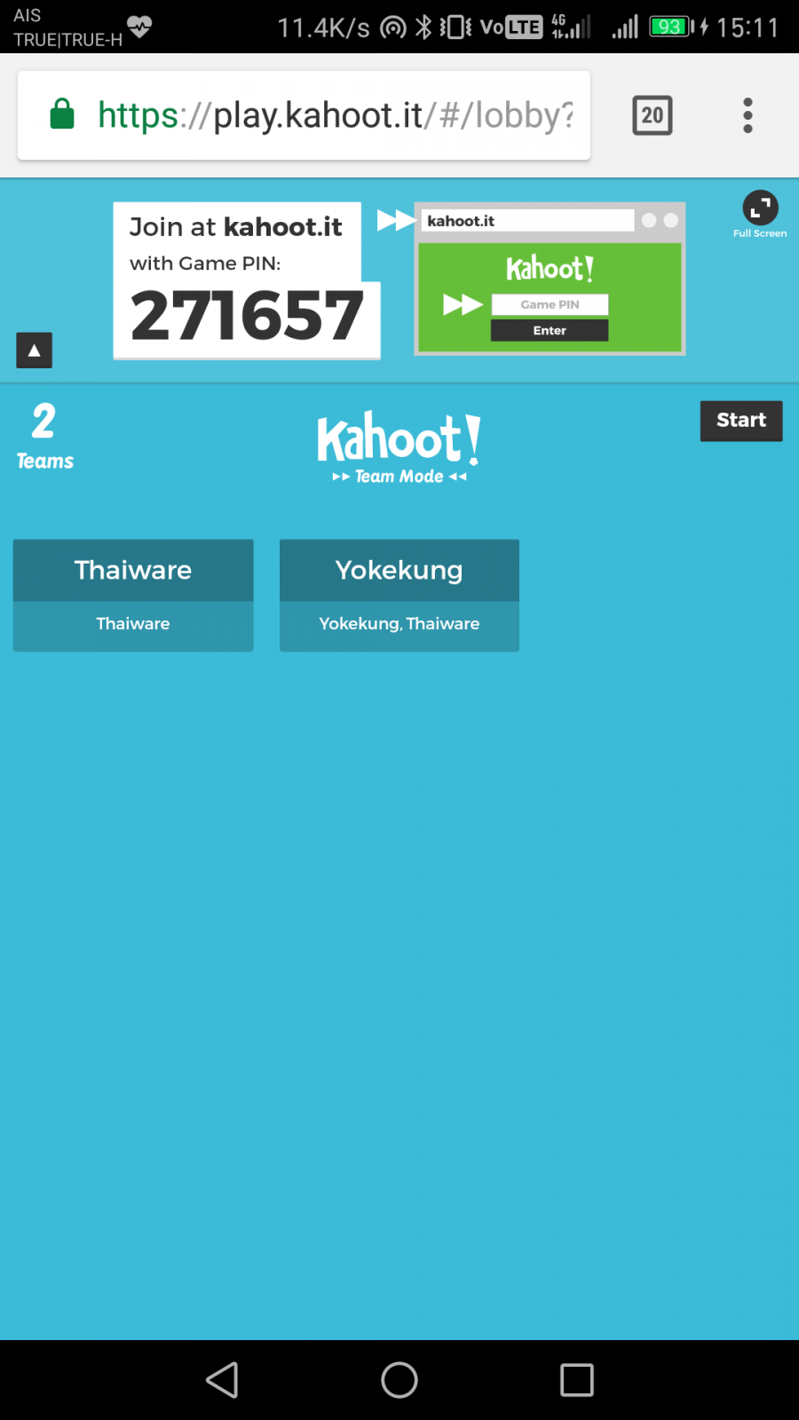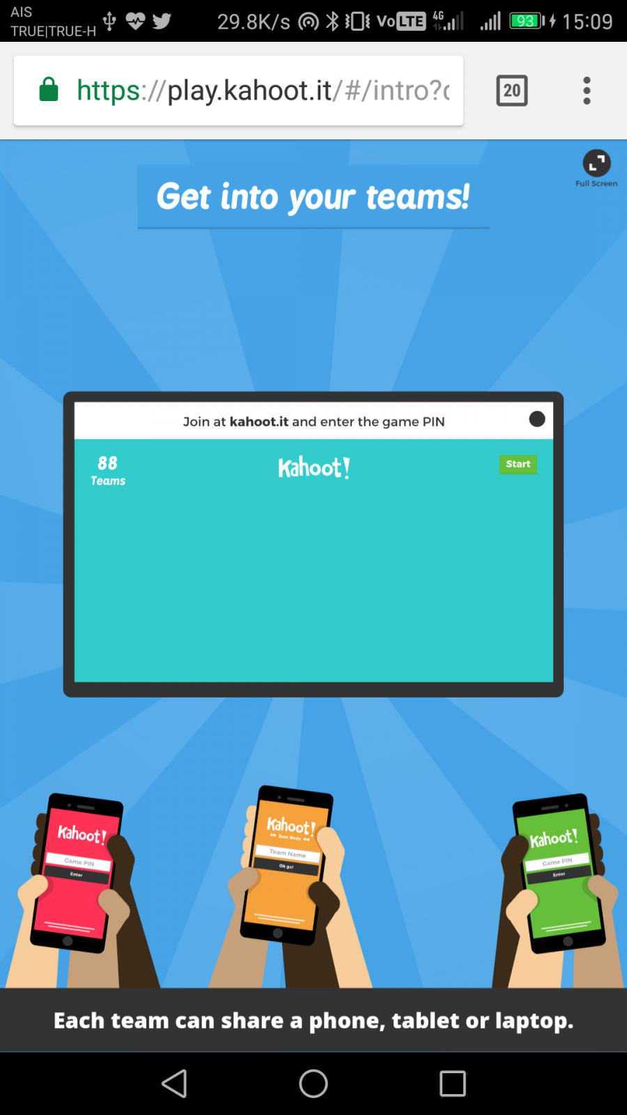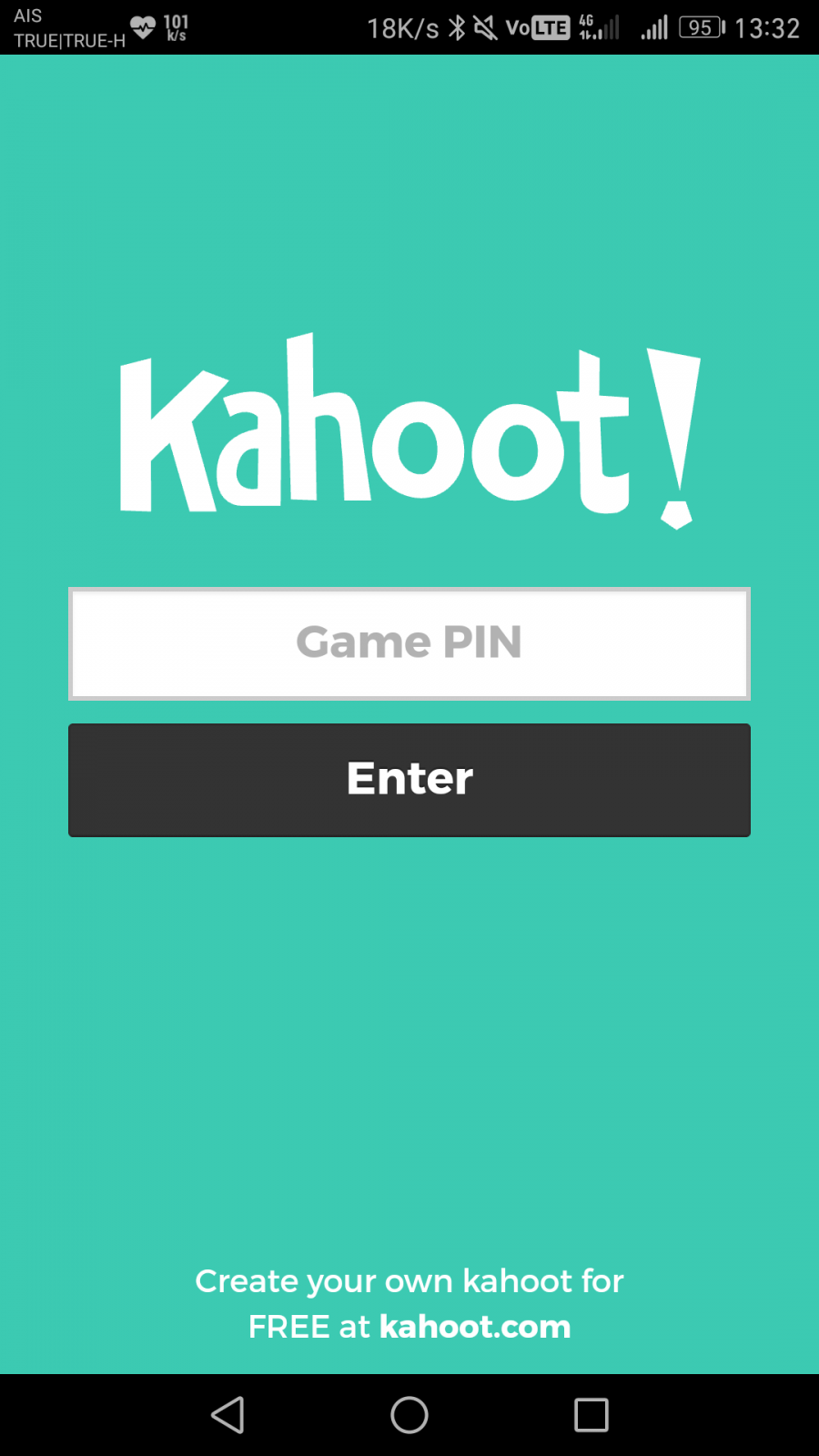 เมื่อได้รับ Game PIN แล้ว กรอกในแอปฯ Kahoot! เช็คชื่อตนเองบนหน้าจอของผู้นำ ว่าอยู่ในทีมผู้เล่น เช่น ในห้องเรียน มองจอหน้าห้องว่ามีชื่อเราร่วมเล่นด้วย