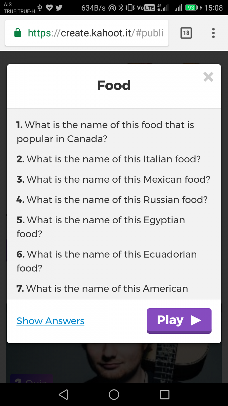 ผู้เขียน ลองเลือกเกมส์นี้ ทายภาพอาหารประจำชาติ จะมีคำถามให้ผู้นำพิจารณาก่อน ว่าผู้เล่นมีความรู้พอจะตอบได้หรือไม่ จากนั้นกด Play