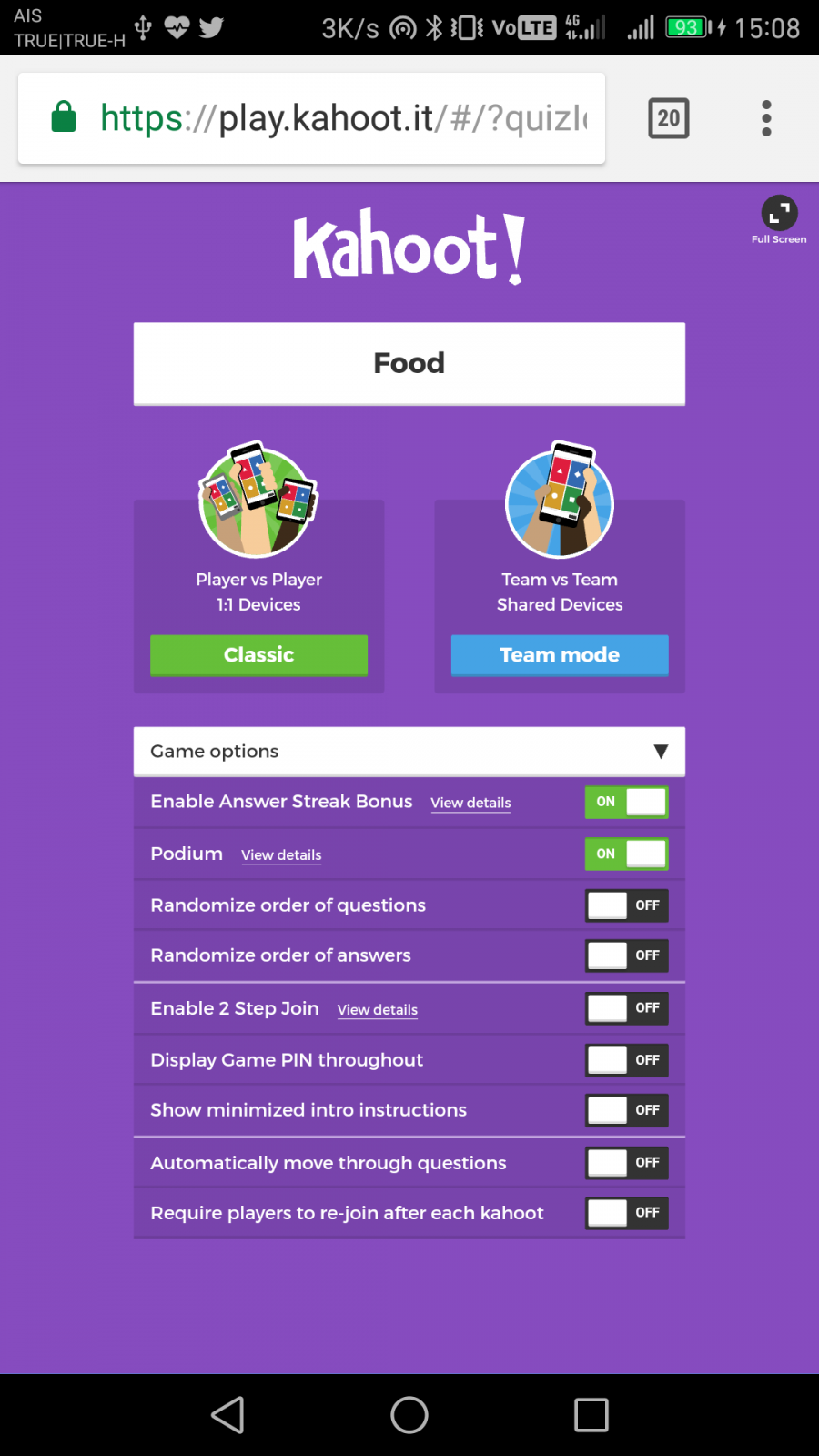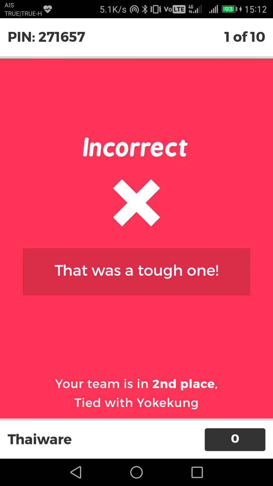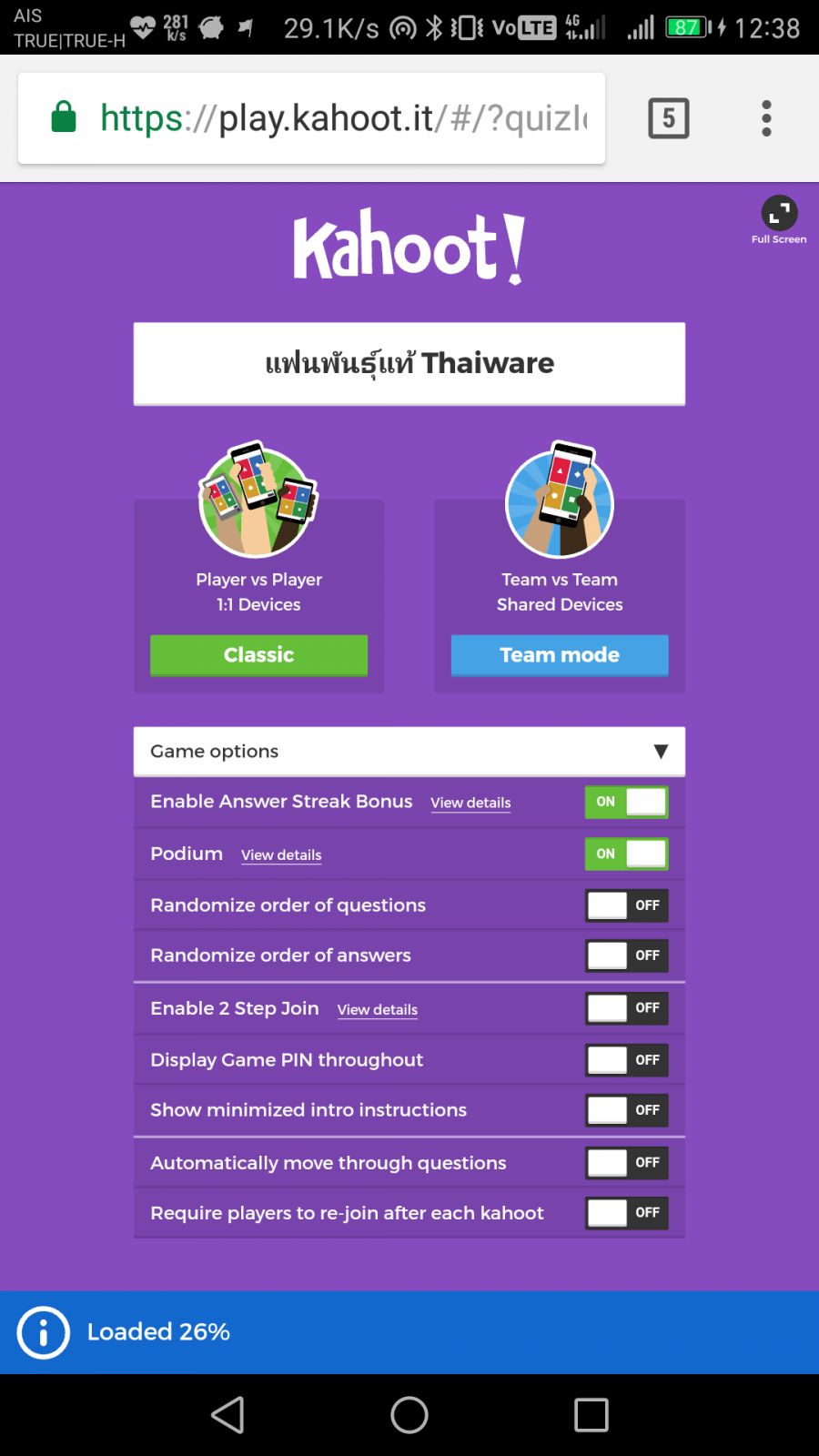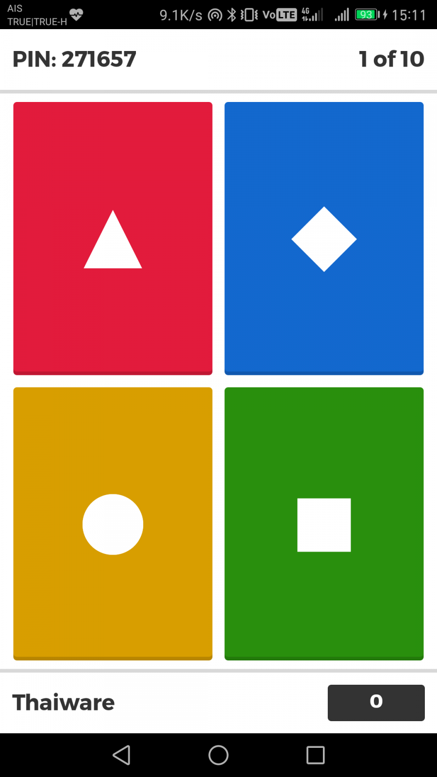 หน้าจอผู้เล่น จะเห็นแค่นี้ครับ อย่างที่แนะนำไปตอนต้นคือ ต้องมีอีกจอเอาไว้ดูคำถาม ถ้าดู Live จะต้องเปิดอีกจอ ดูคำถาม ส่วนมือถือใช้กดตอบคำถามเท่านั้นครับ