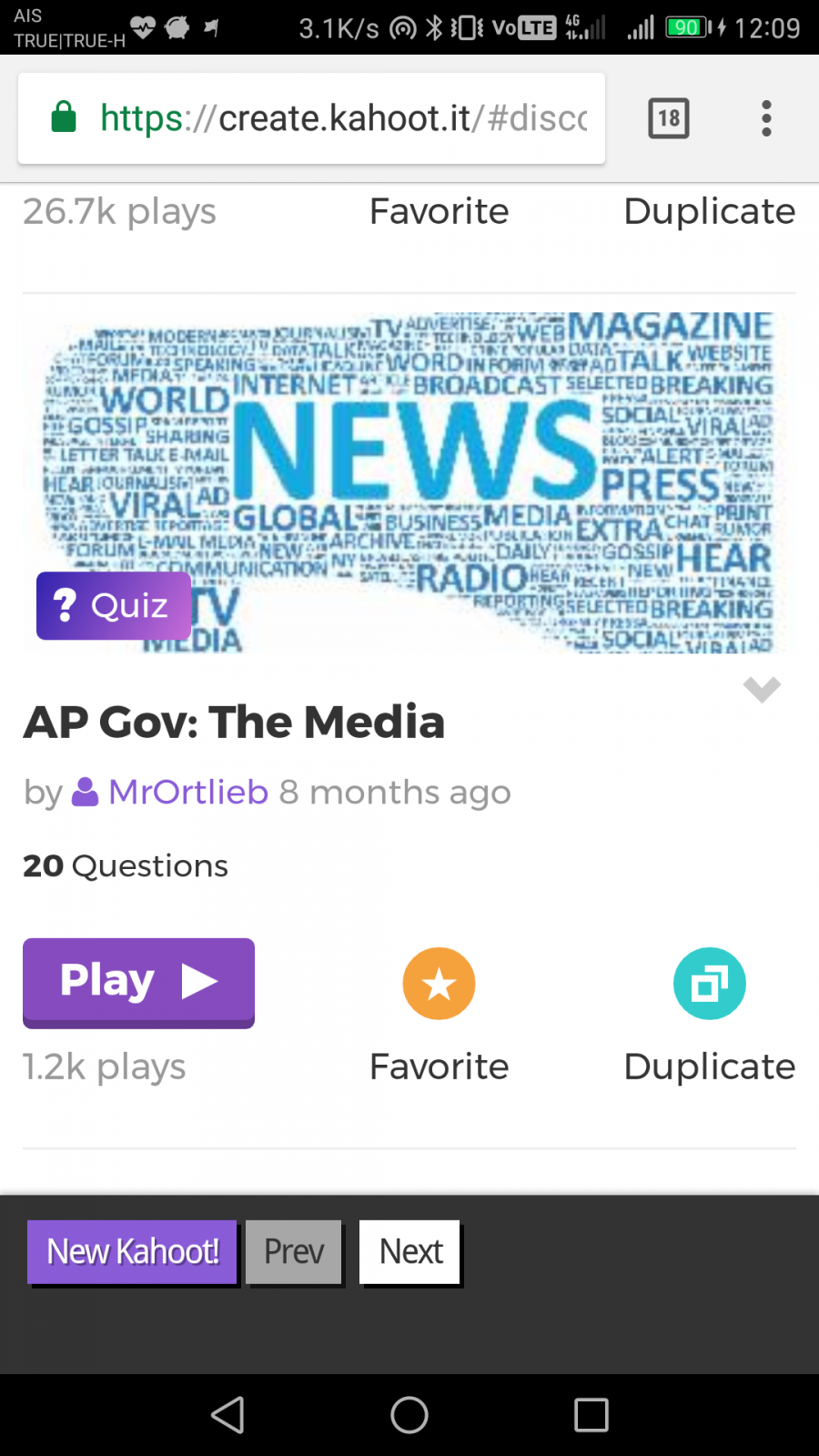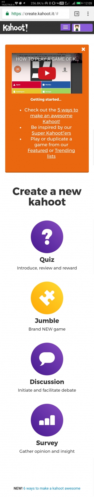 เลื่อนลงไปล่างสุด จนเจอ New Kahoot!
