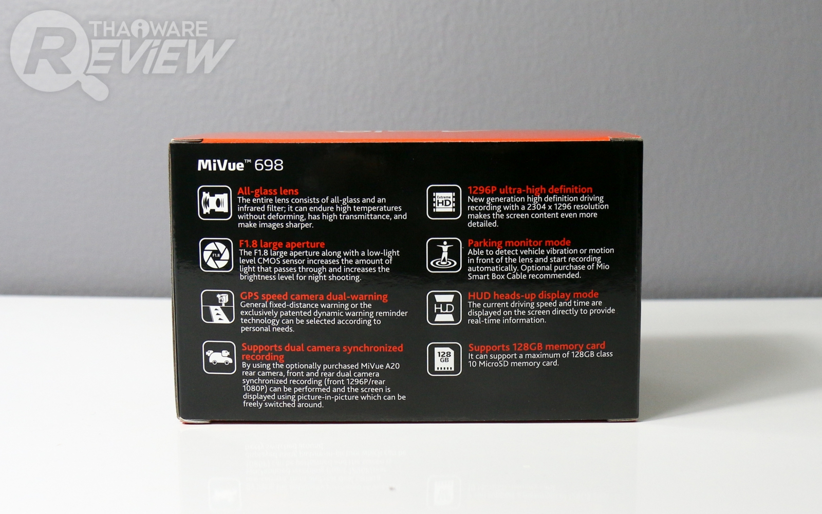 สำหรับความน่าสนใจของ MiVue 698 อยู่ตรงที่เป็นกล้องที่ให้ภาพคมชัด เพราะใช้ชิ้นเลนส์ผลิตจากแก้ว รูรับแสงกว้างถึง f/1.8 และยังมีลูกเล่นอื่นๆ ที่น่าสนใจอีกเพียบ อย่างเช่น มี GPS บอกในตัว, บอกความเร็ว, มีระบบแจ้งเตือน LDWS2 และ FCWS3 ด้วยล่ะ