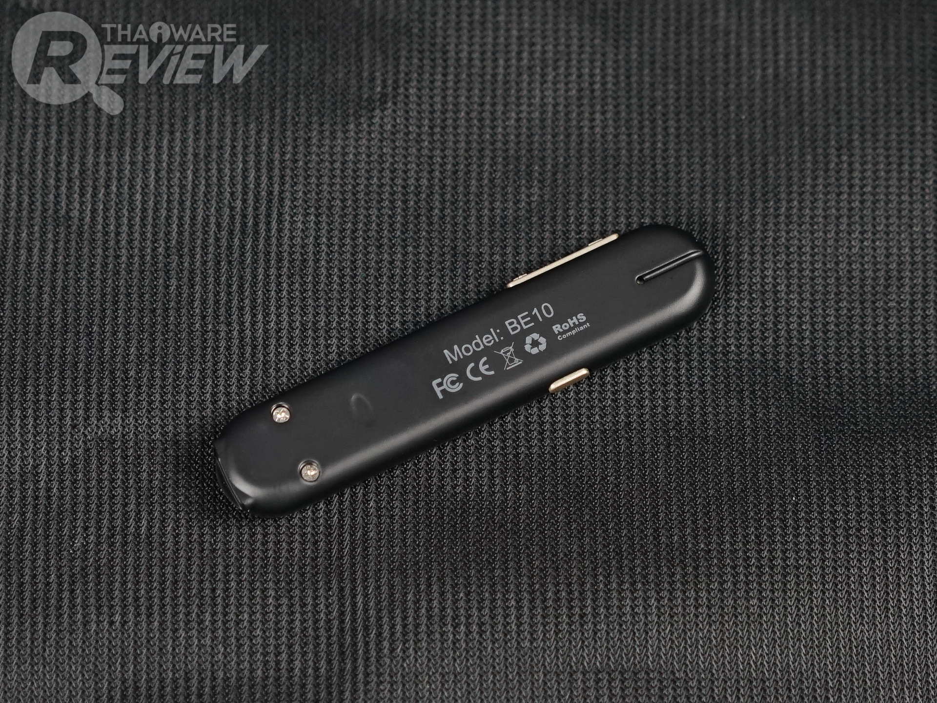 ด้านหลังเรียบๆ ไม่มีอะไร ปุ่มควบคุมบนตัวเครื่อง จะมีแค่ 2 ปุ่ม เท่านั้น คือ ปุ่ม Multifunction กับปุ่มปรับเสียง ซึ่งเจ้าปุ่ม Multifunction นี้ทำหลายหน้าที่เลย ทั้งเป็นปุ่มเปิด, ปุ่มรับ/พักสาย หรือกดสองครั้งเพื่อโทรออกเบอร์ล่าสุด แต่หากเรากำลังฟังเพลงอยู่ จะใช้ในการหยุด/เริ่ม เพลง