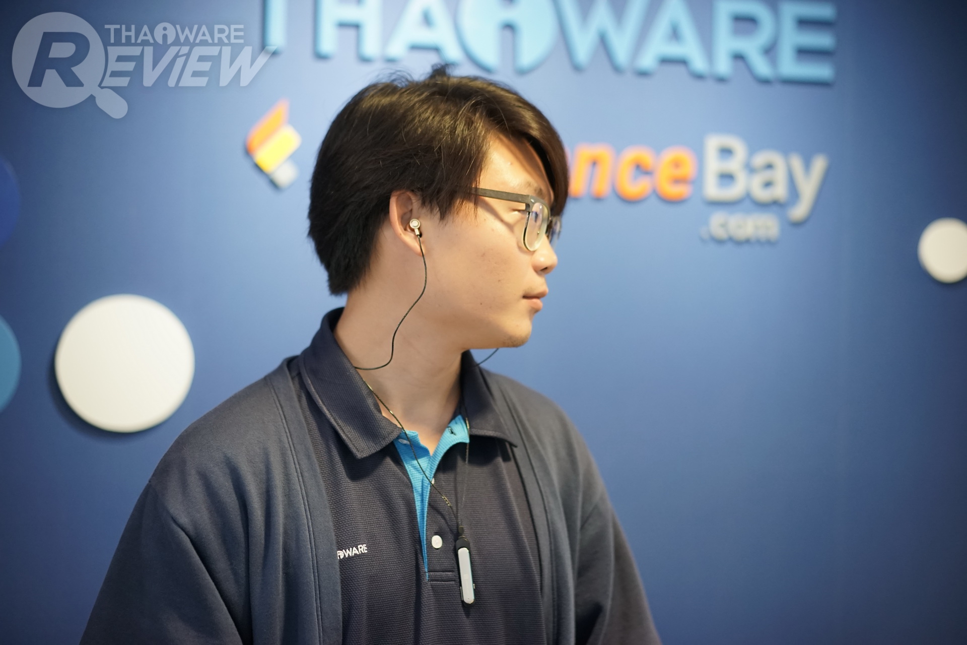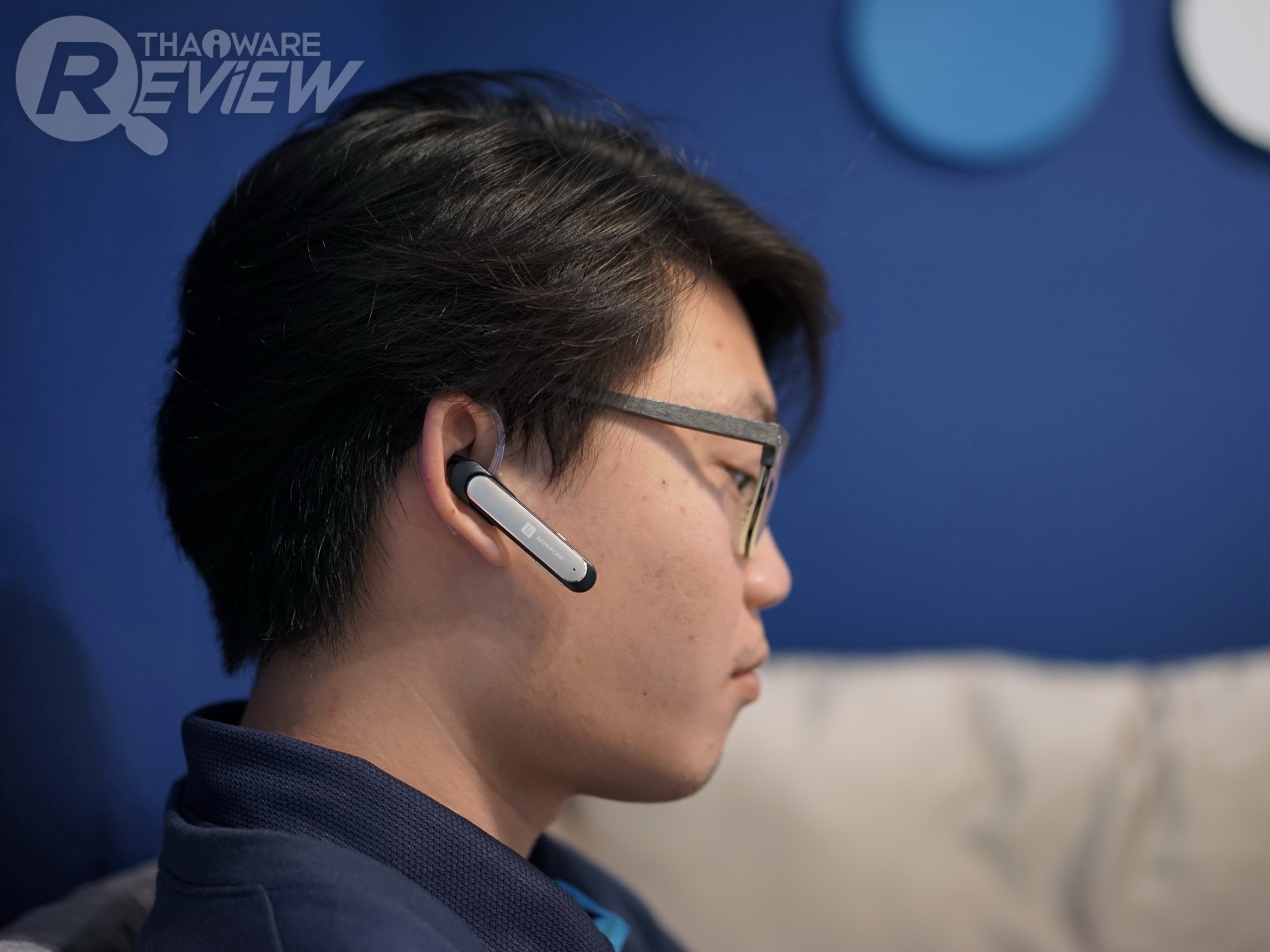 การสวมใส่ก็จะออกมาประมาณนี้ ตัวพลาสติกที่เกี่ยวหูปรับองศาได้ และยืดหยุ่นเล็กน้อย ทำให้ไม่เจ็บหูเวลาสวมใส่