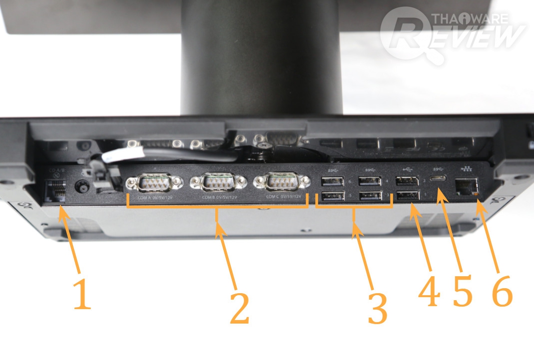 ช่องพอร์ตที่มีให้เลือกใช้ : พอร์ตติดตั้งลิ้นชักเก็บเงิน 1 พอร์ต , USB Type-C จำนวน 1 พอร์ต , พอร์ต Serial จำนวน 3 พอร์ต , USB 2.0 จำนวน 4 พอร์ต , USB 3.0 จำนวน 2 พอร์ต , พอร์ต LAN จำนวน 1 พอร์ต , ช่องแจ็คเสียบ Headset และ สล็อตอ่านการ์ด microSD