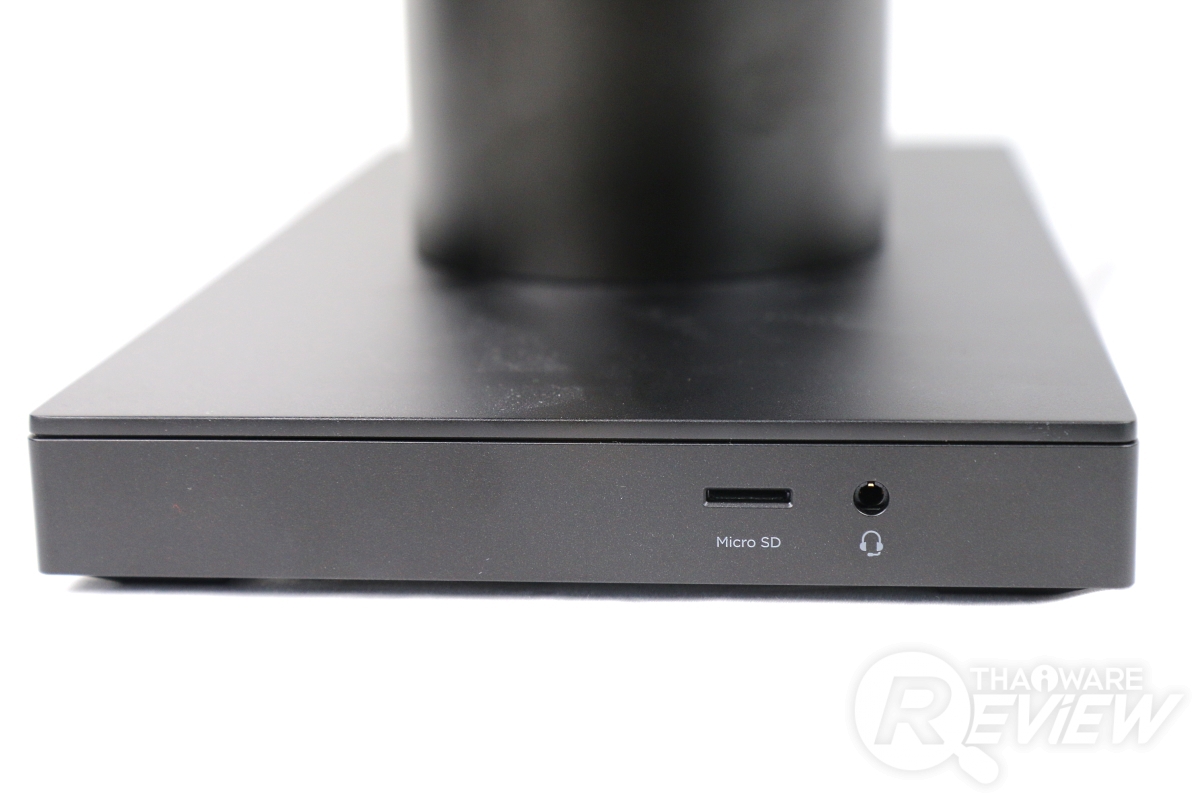 ในตัวเครื่องมีลำโพงติดตั้งมาให้เสร็จสรรพ ซึ่งให้เสียงที่ดังและคุณภาพเสียงดีใช้ได้ รองรับการใช้เปิดเล่นไฟล์เสียงส่งเสริมการขาย และรองรับการใช้งานกับซอฟต์แวร์ POS ที่มีเสียงประกอบได้เป็นอย่างดี โดยทางด้านข้างฐานตัวเครื่อง มีช่องแจ็คเสียบ Headset (ชุดหูฟัง+ไมค์) และมีช่องอ่านการ์ดหน่วยความจำแบบ microSD ด้วย