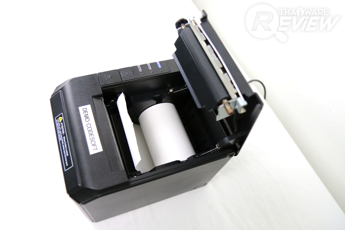 เรามาลองใช้งานจริงกับเครื่องพิมพ์ใบเสร็จระบบความร้อนตัวนี้กันบ้าง จุดเด่นของมันอยู่ตรงที่ทำความเร็วในการพิมพ์ได้สูงถึง 300 มิลลิเมตร/วินาที ในราคาขายเพียง 6,680 บาท ซึ่งถ้าเทียบกับ เครื่องพิมพ์แบรนด์หลักในตลาดที่ระดับราคาใกล้เคียงกัน มันจะทำความเร็วได้เพียงประมาณ 200 มิลลิเมตร/วินาที เท่านั้น ทำให้เครื่องพิมพ์นี้โดดเด่นในเรื่องของความเร็วการพิมพ์ ซึ่งเราลองทำการพิมพ์ใบเสร็จ (โดยเชื่อมต่อกับเครื่องคอมฯ POS ผ่านพอร์ต USB) ผลก็ปรากฏว่าสามารถทำงานได้รวดเร็วจริง ไม่ต้องทำให้ลูกค้ารอใบเสร็จนาน และระบบการฟีดกระดาษ รวมถึงระบบใบมีดตัดกระดาษ ทำงานได้ราบรื่นดี ไม่พบปัญหาใดๆ ในระหว่างการใช้งาน จัดเป็นเครื่องพิมพ์ใบเสร็จระบบความร้อนที่ใช้งานง่าย และเด่นเรื่องความเร็ว และใครที่สนใจสั่งซื้อก็ คลิกที่นี่ได้เลย