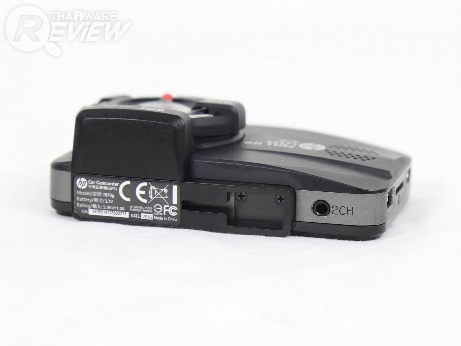 ด้านบนจะมีช่อง 2CH สำหรับเชื่อมต่อกับกล้องหลัง เพื่อใช้ในระบบช่วยถอยรถ และร่องสลักสำหรับเสียบเข้ากับที่ยึดกล้องในรถยนต์